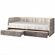 Данная модель кровати подойдёт не только для организации зоны сна и отдыха молодёжной комнаты, но и для детской (для детей дошкольного возраста). Конструкция представляет собой корпус с бортами, два выдвижных ящика, основание (щиты ЛДСП).