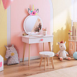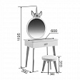 Создайте волшебный уголок для вашей дочери с этим прекрасным набором. Трюмо с ярким зеркалом и выдвижным ящиком с ручкой в форме сердечка идеально подойдет для хранения всех любимых аксессуаров. Прочная столешница предлагает много пространства для рисования и других творческих занятий. Деревянные ножки со специальными фетровыми подпятниками гарантируют безопасность пола, а плюшевый чехол комфорт при сидении.