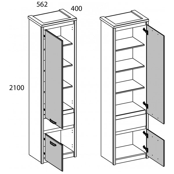 2. Шкаф 2D1S JAZZ 562x400x2100 мм