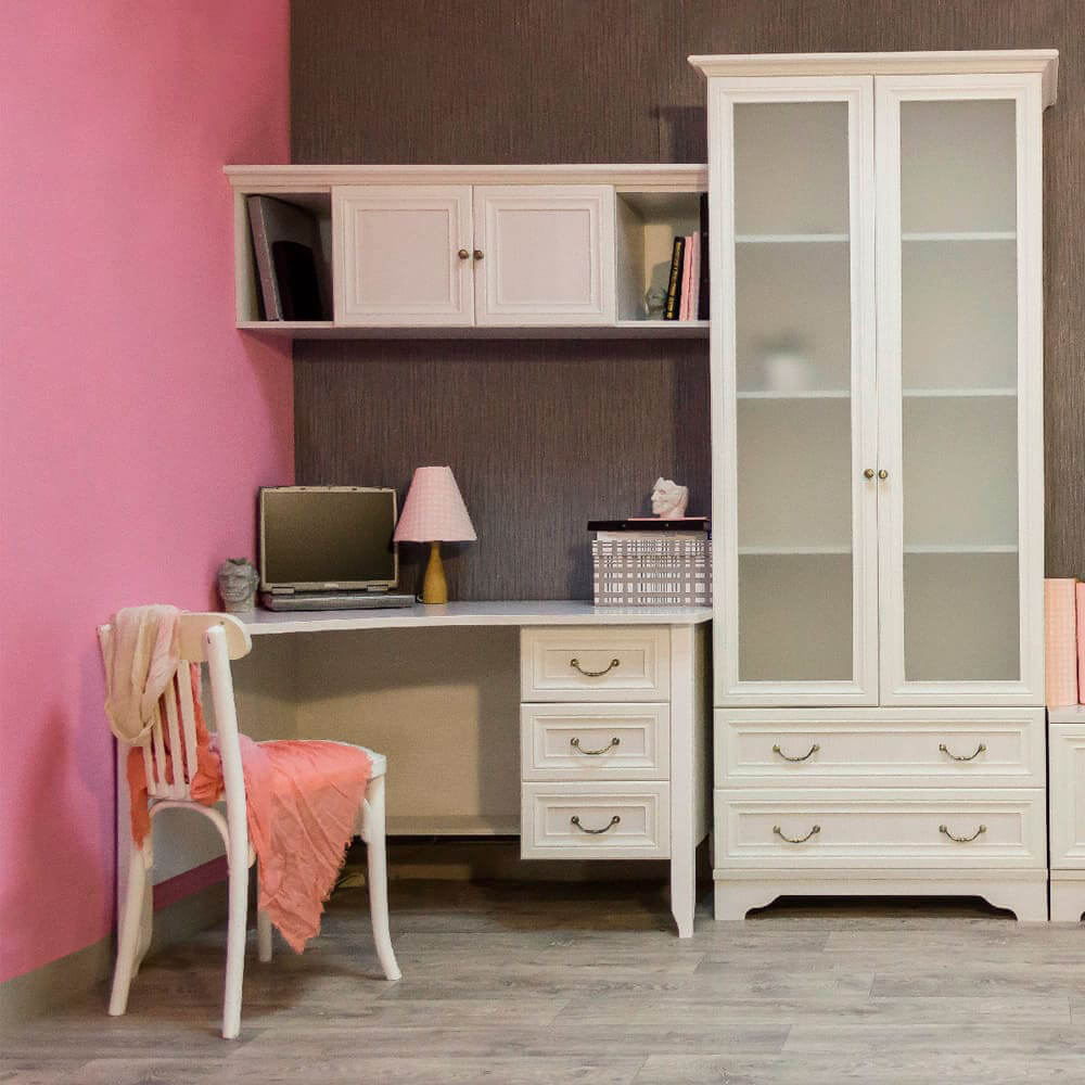 Фасады: рамочный профиль МДФ в пленке белый + ЛДСП 10 мм рамух белый/ стекло матовое.