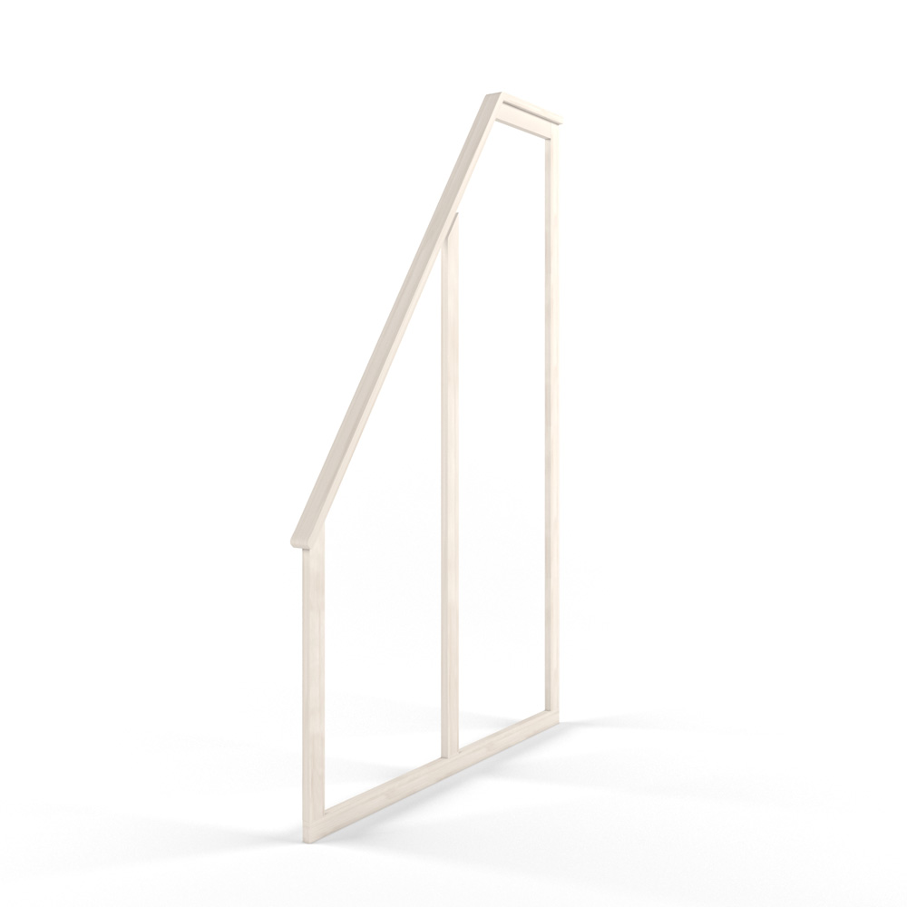 Ограждение крепится к ступеням. Материал:Массив березы, цвет выбеленное дерево.