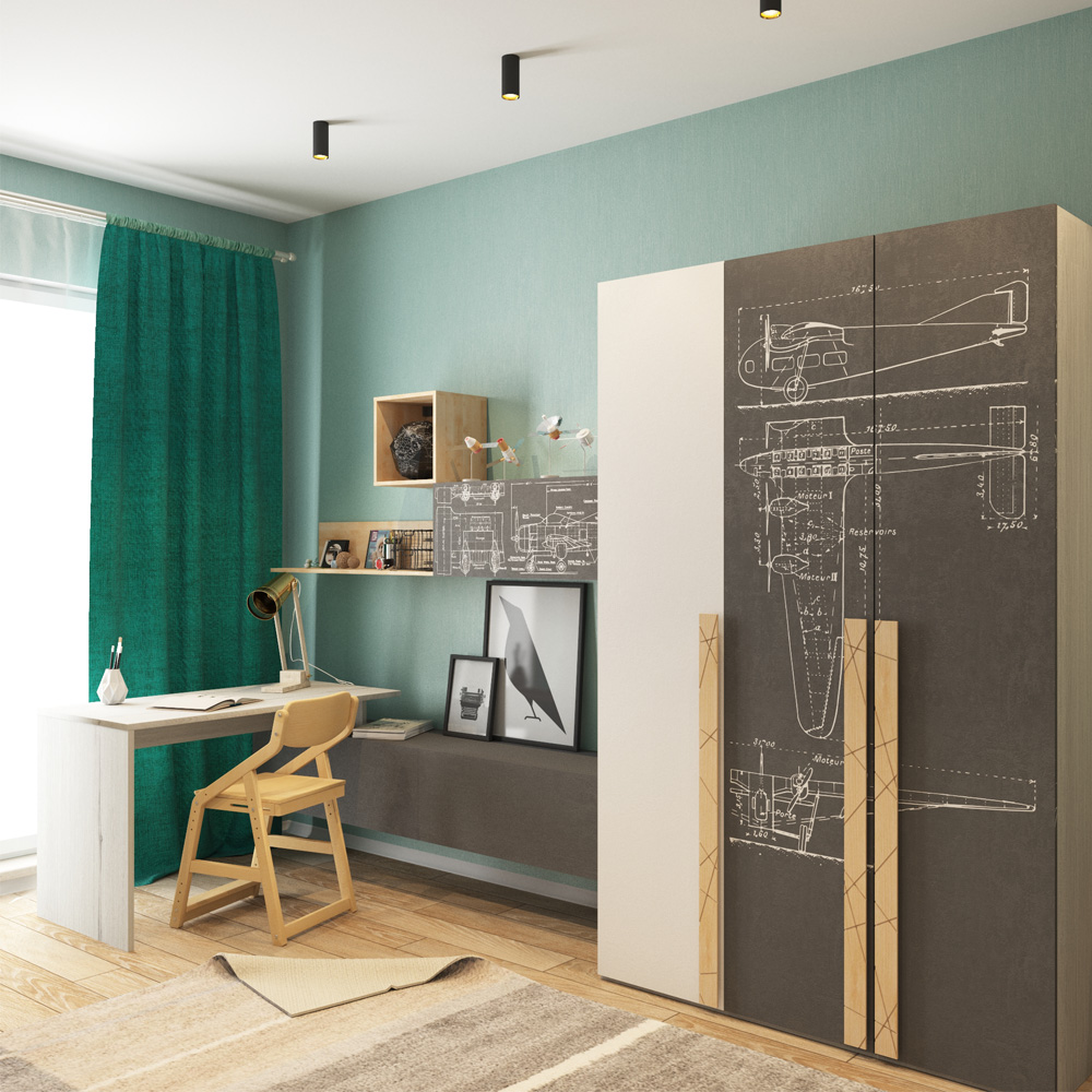 Полка 2 Куба с фасадом НьюТон Грэй Серый Лофт/Авиатор