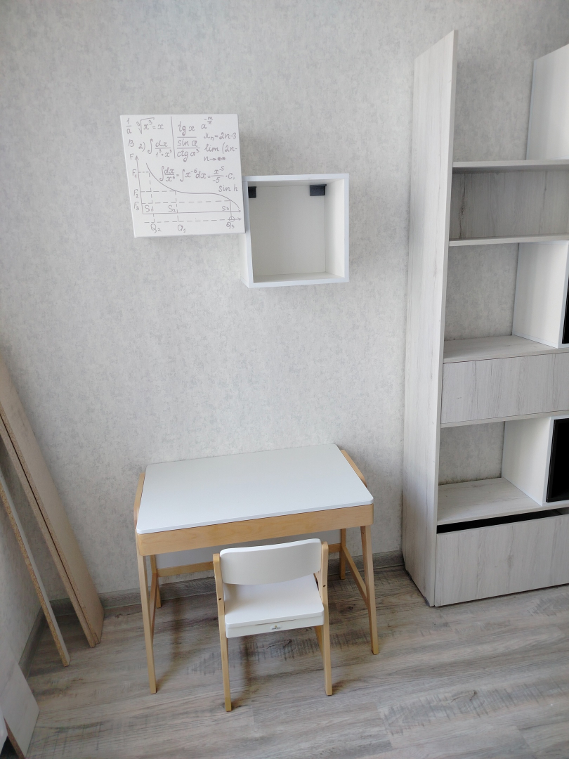 Полка крепится к стене. Материал:ЛДСП 16 мм. Фурнитура:навесы.
