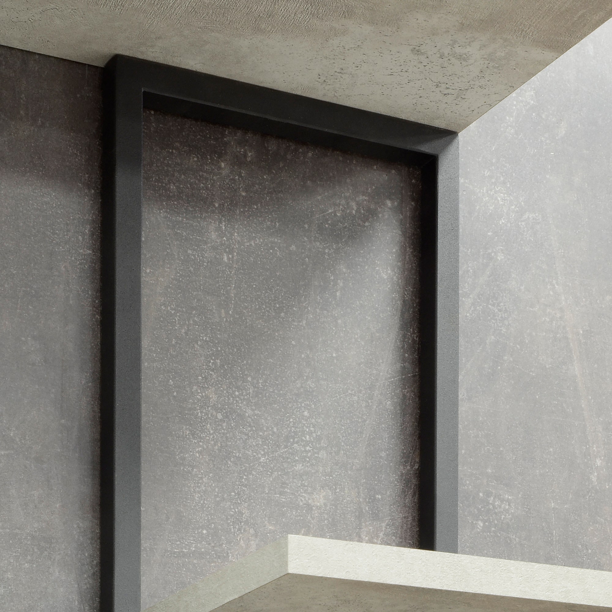 Каркас из трубы 15х15 мм, порошковое покрытие черный матовый, ЛДСП 16 мм, цвет Цемент светлый.