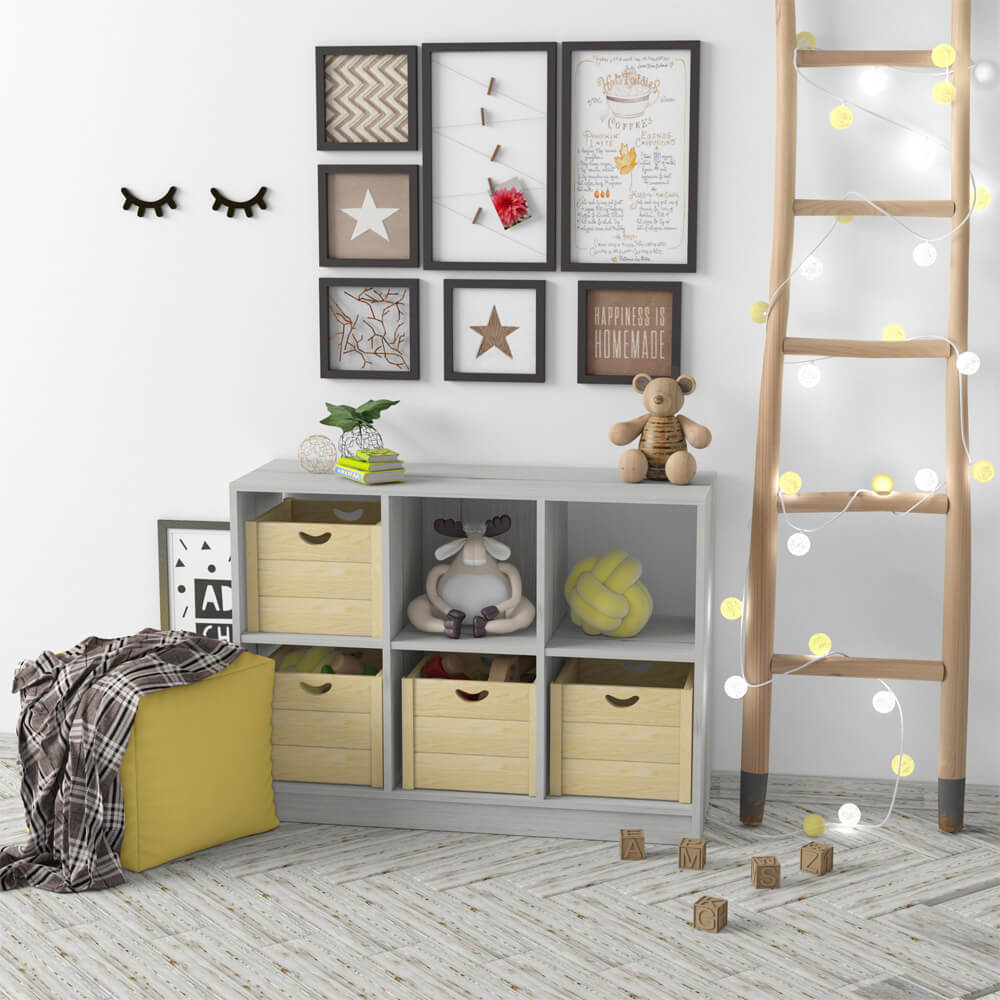 Система хранения на 6 ячеек предназначена для хранения детских вещей. Материал Корпус: ЛДСП 16 мм. Есть скос под плинтус 70х40 мм.