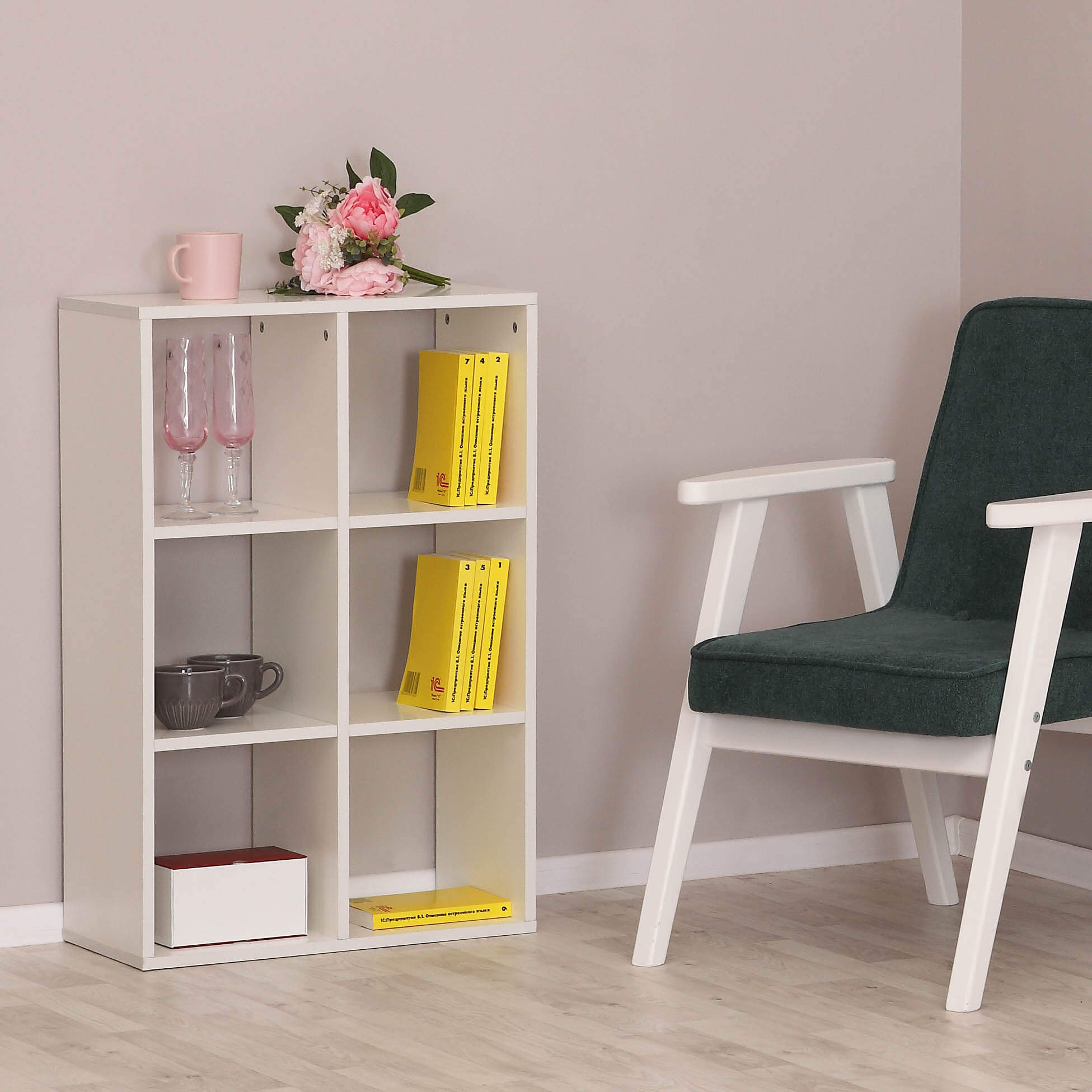 Стеллаж 6 ячеек вертикальный Белый жемчуг