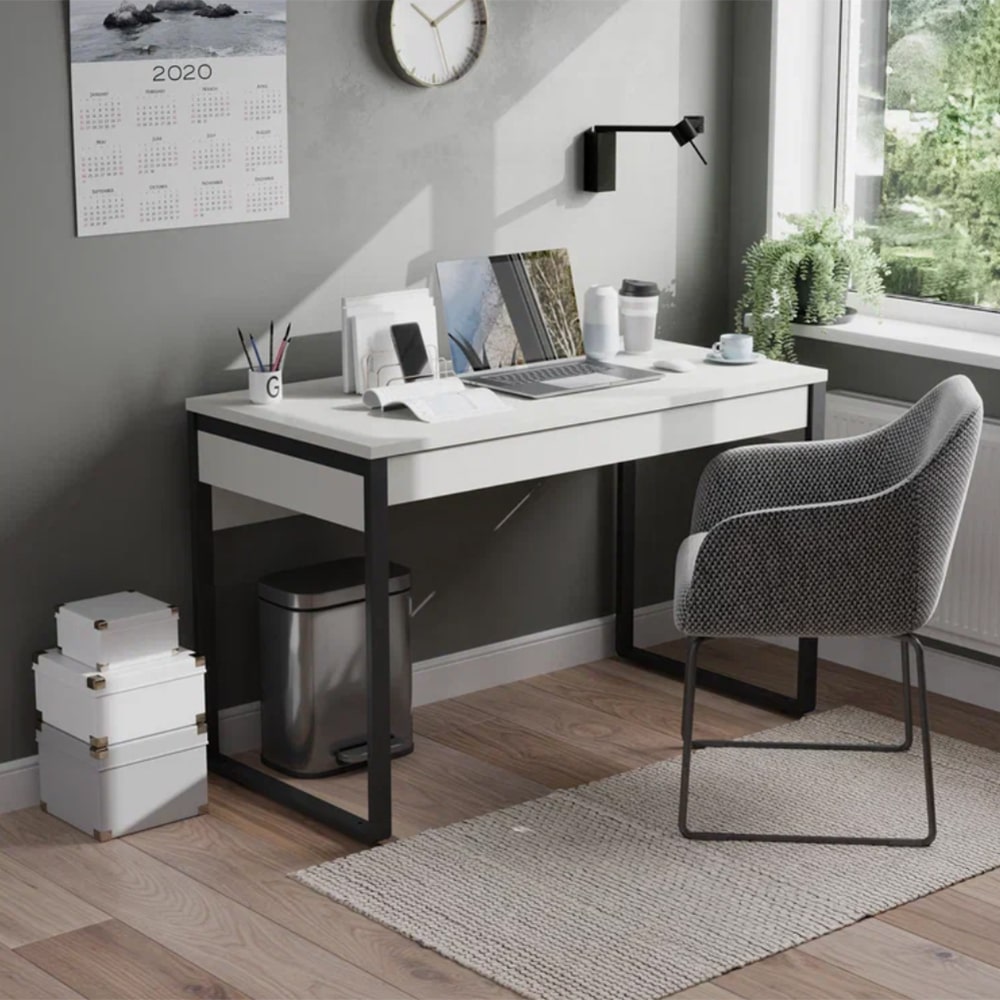 Каркас из проф. трубы 40х20 мм, покрытие черный муар, ЛДСП 16 мм белый шагрень, кромка белый шагрень, комплект направляющих 500мм.