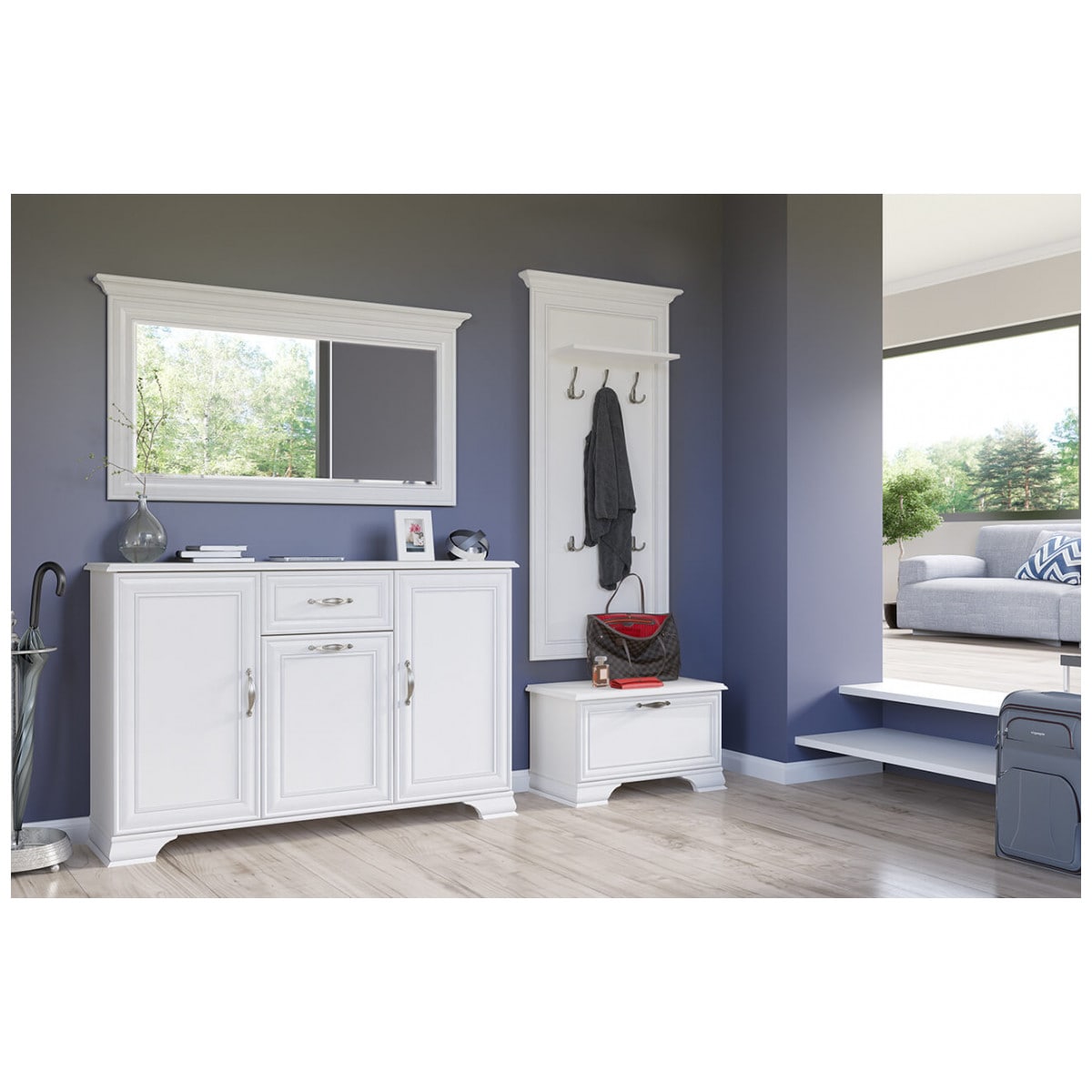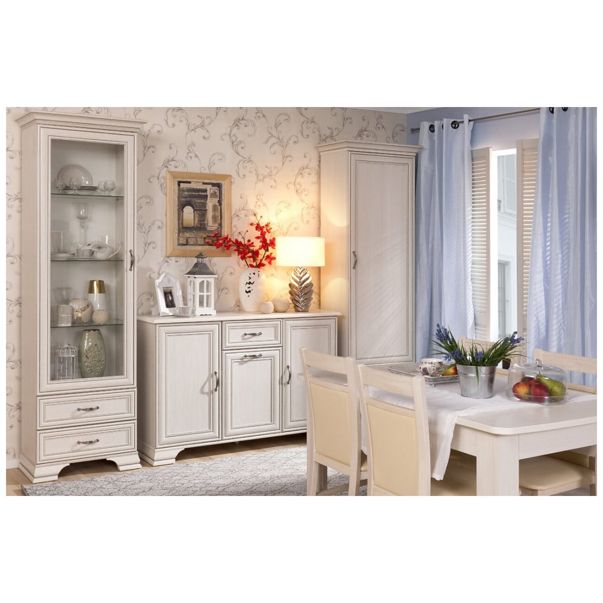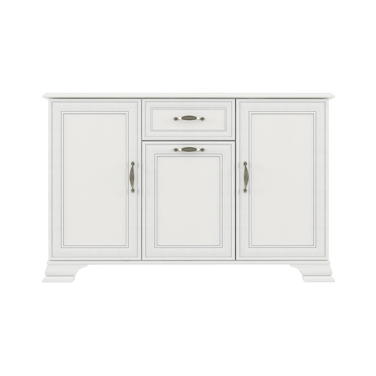 Элемент прекрасно оформит интерьер гостиной, столовой, также спальни. Тумба 3D1S может сочетаться с зеркалом 130, и организовать Стол туалетный в спальне. Тумба Тиффани 3D1S – прямая. Конструкция элемента представляет собой три отделения с полками из ЛДСП за глухими дверями (3D) для хранения предметов одежды, белья, скатертей, салфеток, посуды и других предметов быта, а также один выдвижной ящик (1S). Двери распашные, крепятся на петли к боковому корпусу.