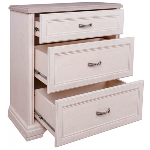 Комод Монако 3S – это, в первую очередь, удобное размещение вещей, которые должны быть всегда под рукой. А также этот предмет мебели создаст красивую и уютную атмосферу в интерьере спальни и молодёжной комнаты в сочетание с другими изделиями коллекции Монако. Комод Монако 3S – прямой. Конструкция элемента представляет собой три выдвижных ящика (3S) для хранения белья, одежды и аксессуаров.