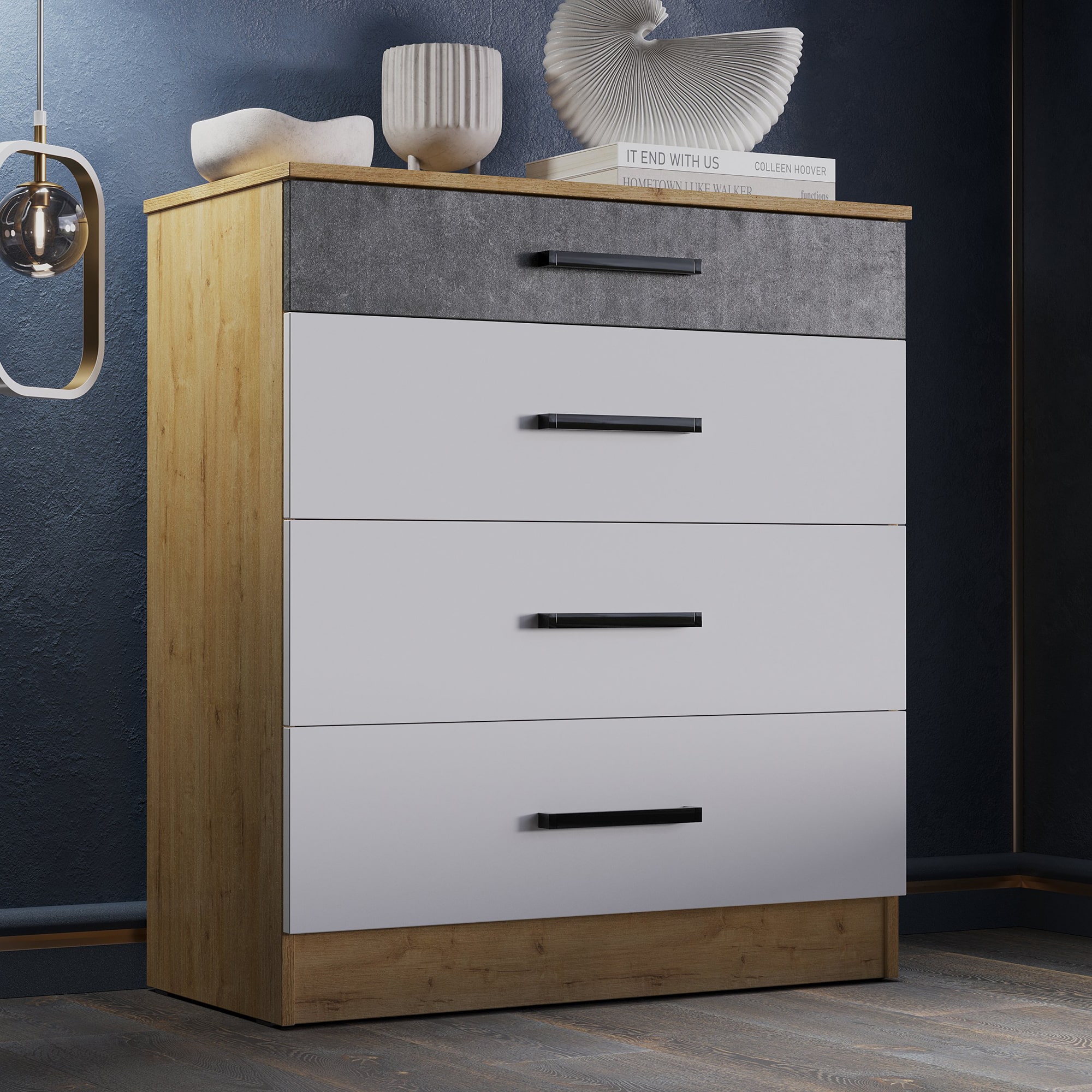 Комод АДЕЛЬ 800-4Я Дуб вотан-Белый гладкий