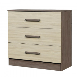 Комод оснащен тремя ящиками, что обеспечивает достаточное пространство для хранения различных предметов.