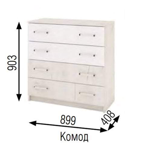 Комод "Антилия" идеально подходит для хранения одежды, белья, игрушек и других вещей в детской комнате. Он выполнен в современном стиле, имеет четыре выдвижных ящика с ручками, имитирующими текстуру дерева. Благодаря компактным размерам, комод прекрасно впишется в любую детскую комнату. Белый глянцевый фасад прекрасно сочетается с поверхностью, имитирующей текстуру дерева, что создает гармоничный и уютный интерьер.