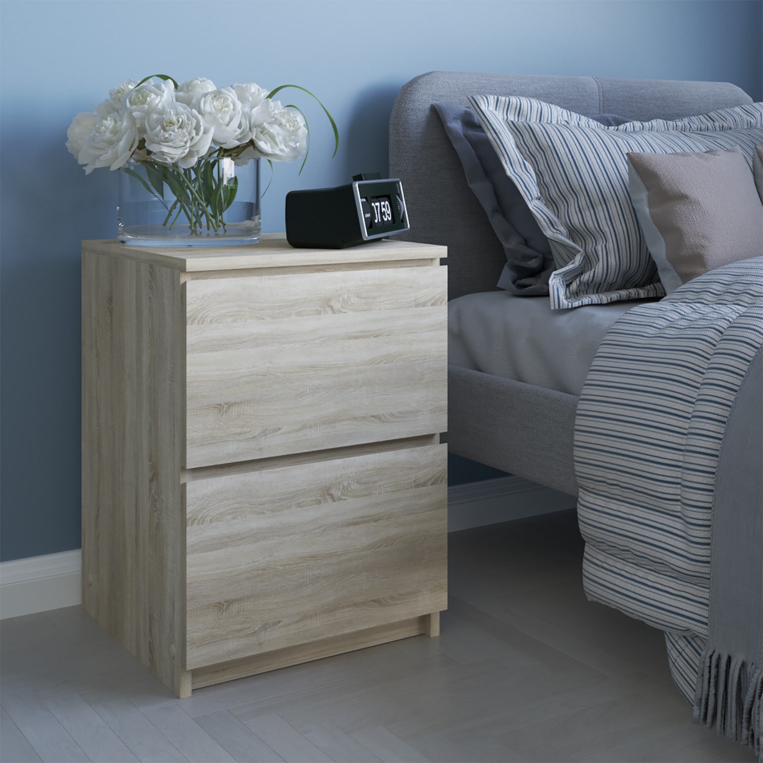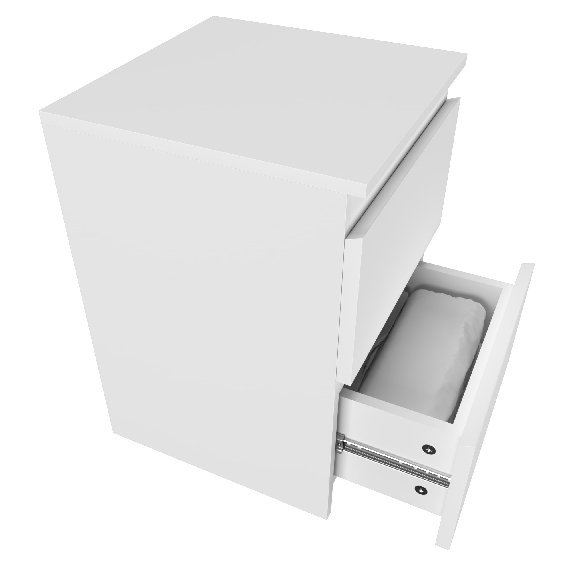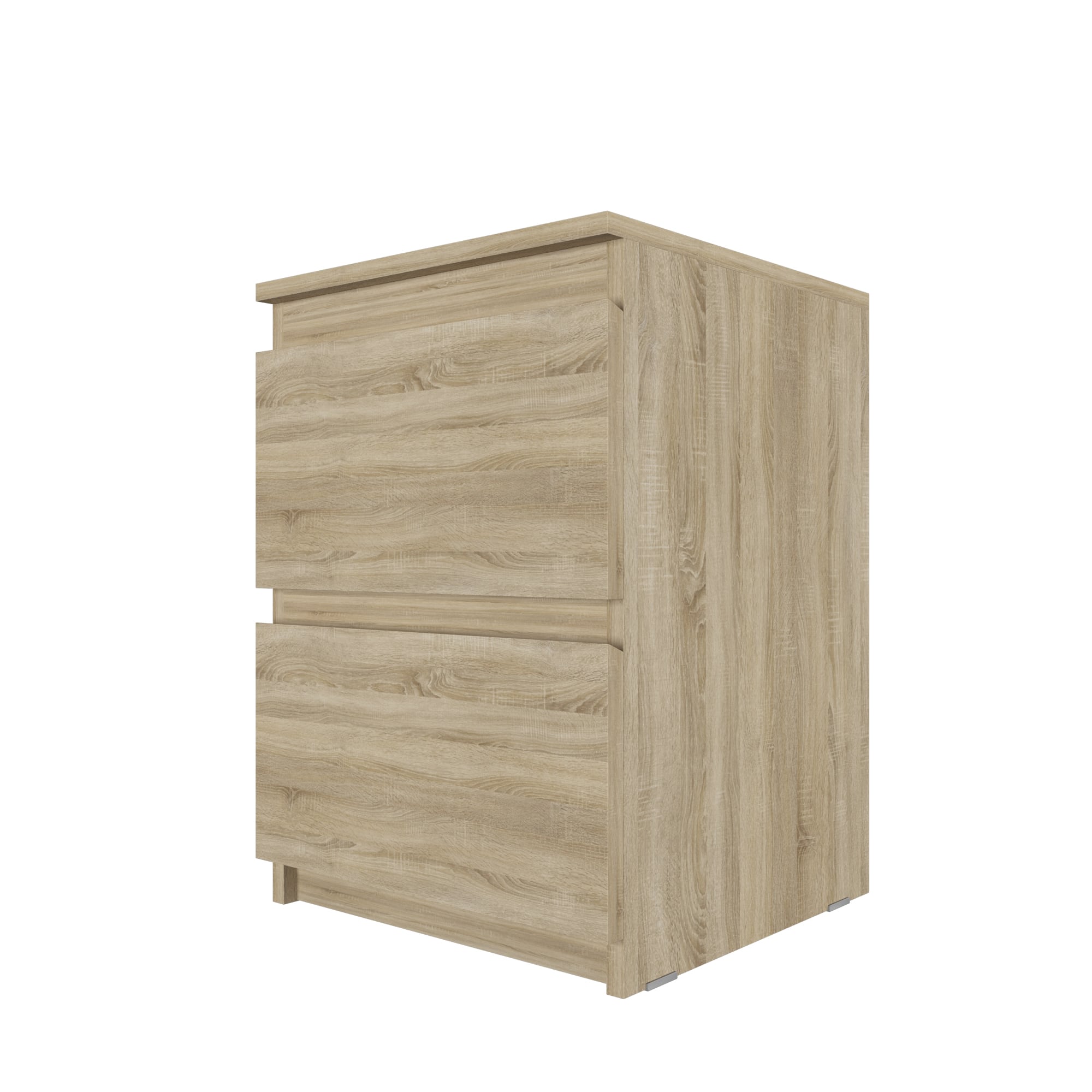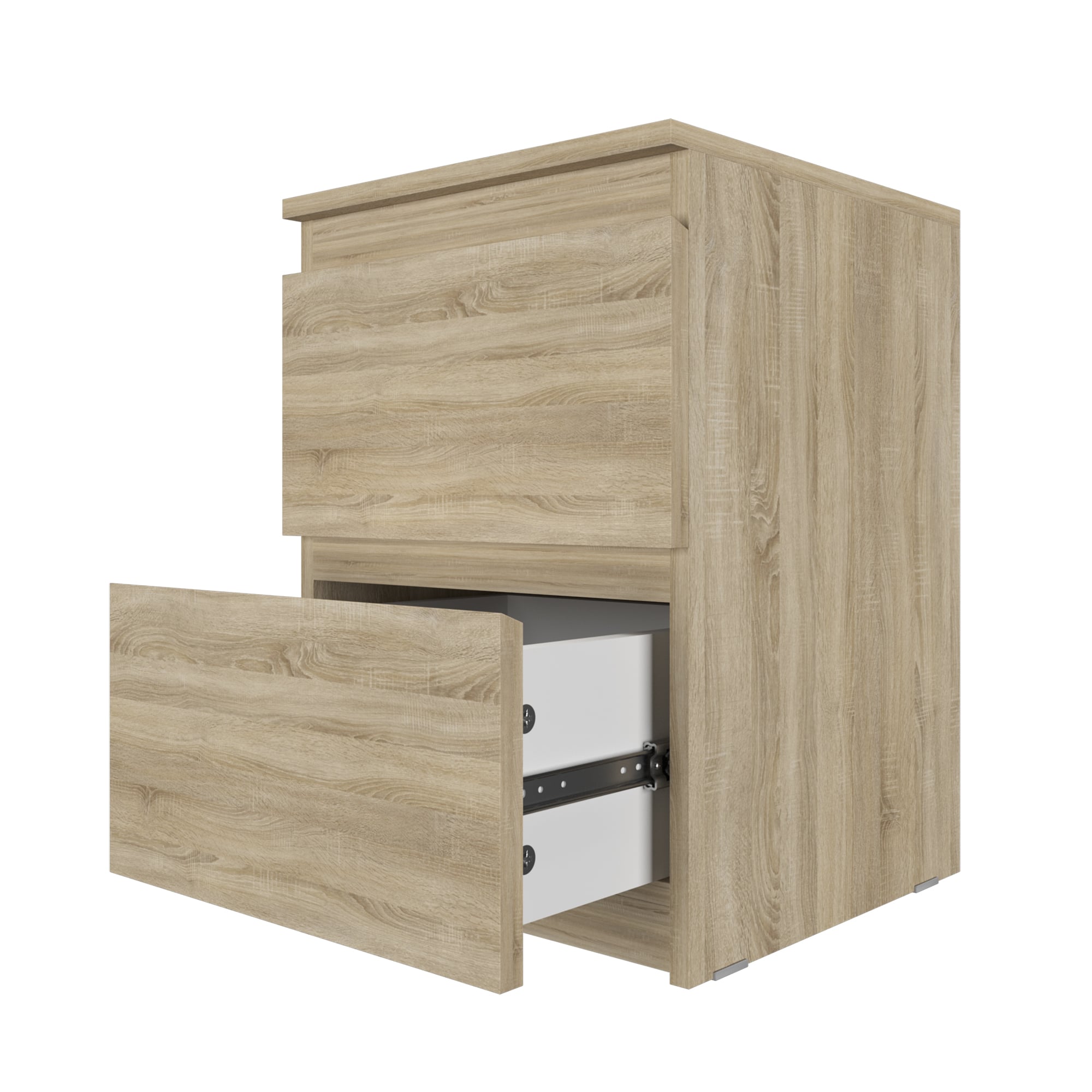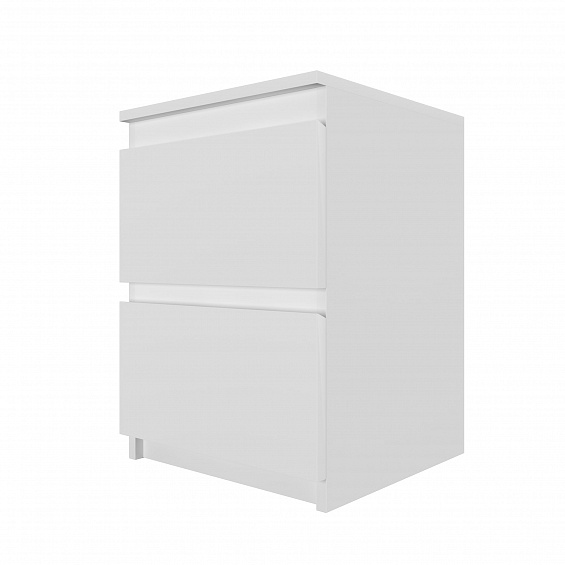 Комод оснащен двумя ящиками с шариковыми направляющими, что обеспечивает плавное и бесшумное открывание. Высота комода составляет 55 см, ширина - 40,4 см, а глубина - 38,5 см.