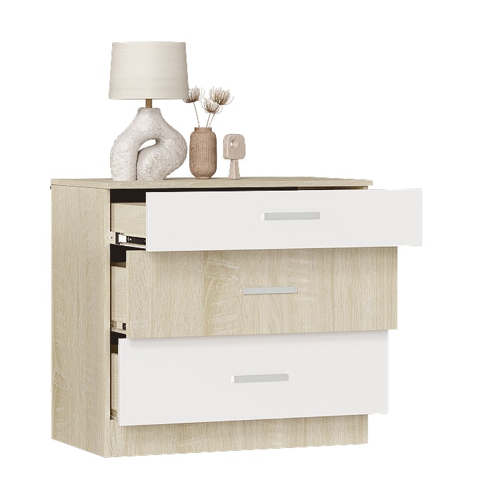 Комод «Бари» - это идеальный выбор для тех, кто ценит простоту и функциональность в интерьере. Выполненный в стиле минимализма, он имеет три выдвижных ящика, которые легко открываются с помощью ручек. В этих ящиках вы сможете хранить свою одежду, домашний текстиль и различные аксессуары. Благодаря своему универсальному дизайну, комод «Бари» прекрасно дополнит любую комнату в вашем доме.