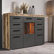 Комод “Бастон” выполнен в современном стиле и представляет собой идеальное сочетание функциональности и эстетики. Изготовлен из высококачественного материала, который придает ему прочность и долговечность. Фасад комода в цвете графит эффектно контрастирует с коричневым основанием, создавая стильный и гармоничный образ.