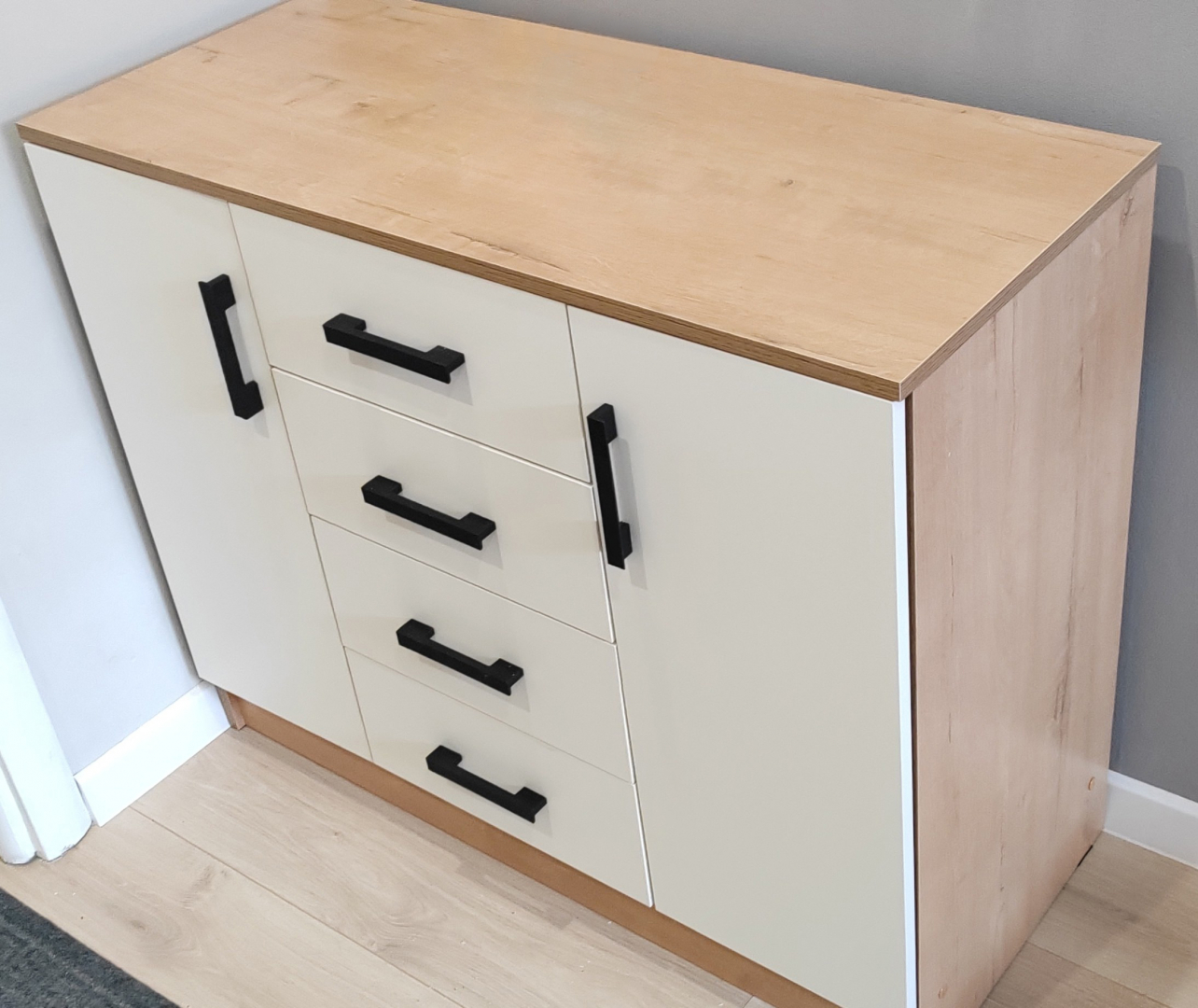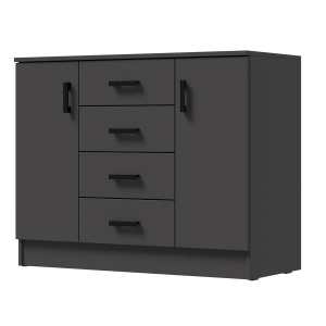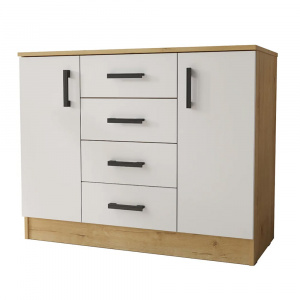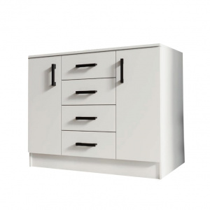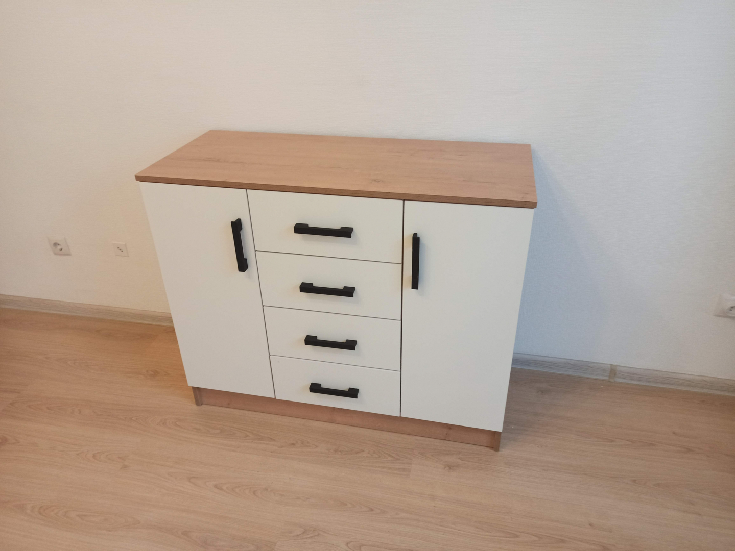 Комод оснащен четырьмя ящиками. Это позволяет хранить в них различные предметы, от одежды до книг и аксессуаров.