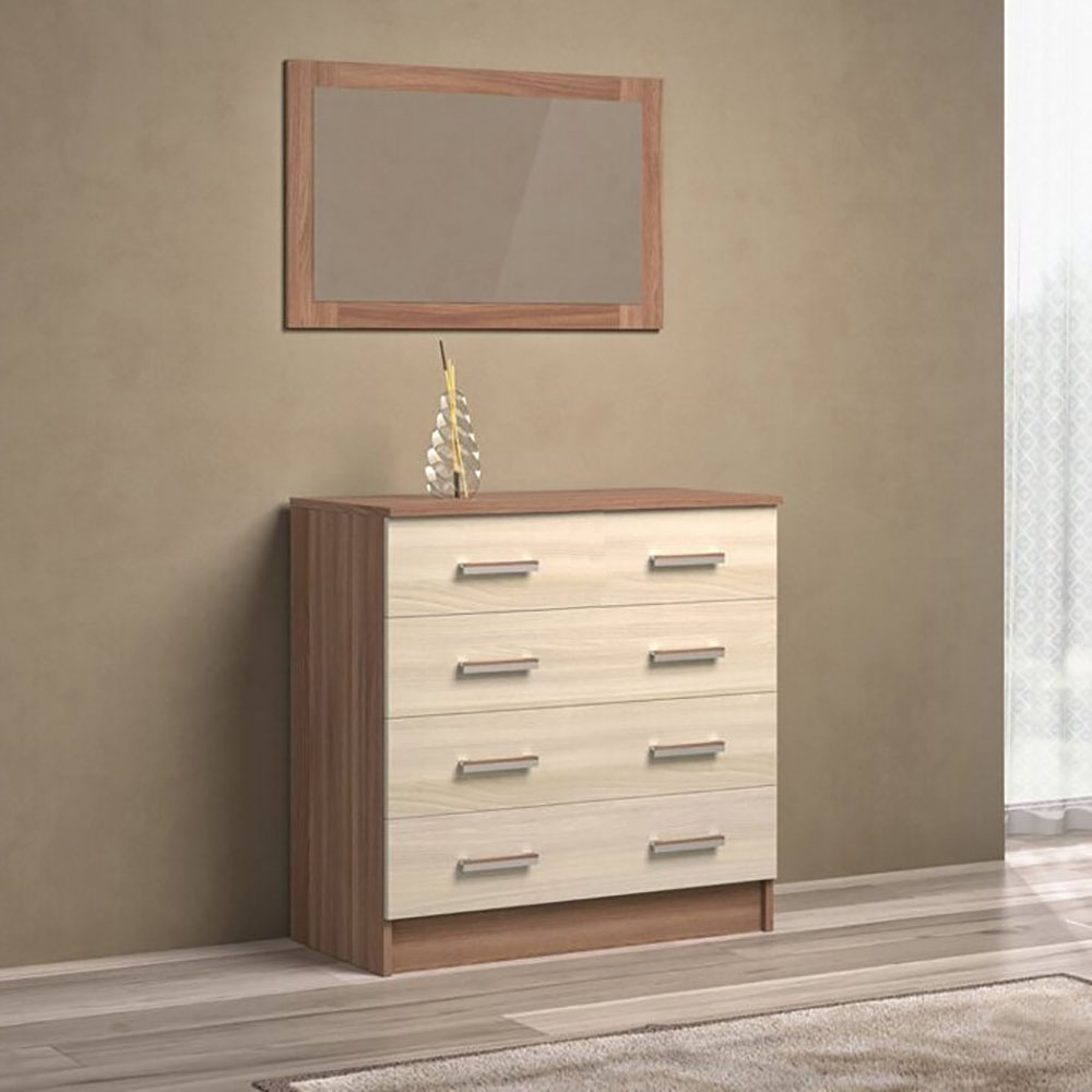 Комод оснащен четырьмя ящиками, которые обеспечивают удобное хранение белья, одежды и других предметов.