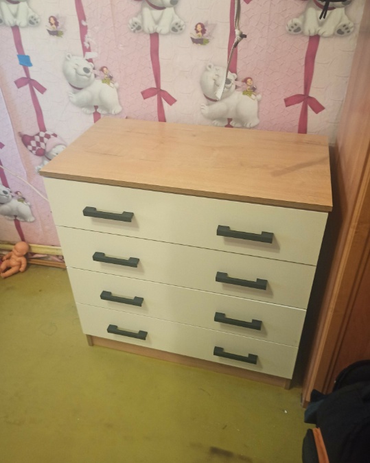 Комод оснащен четырьмя ящиками. Это позволяет хранить в них различные предметы, от одежды до аксессуаров.