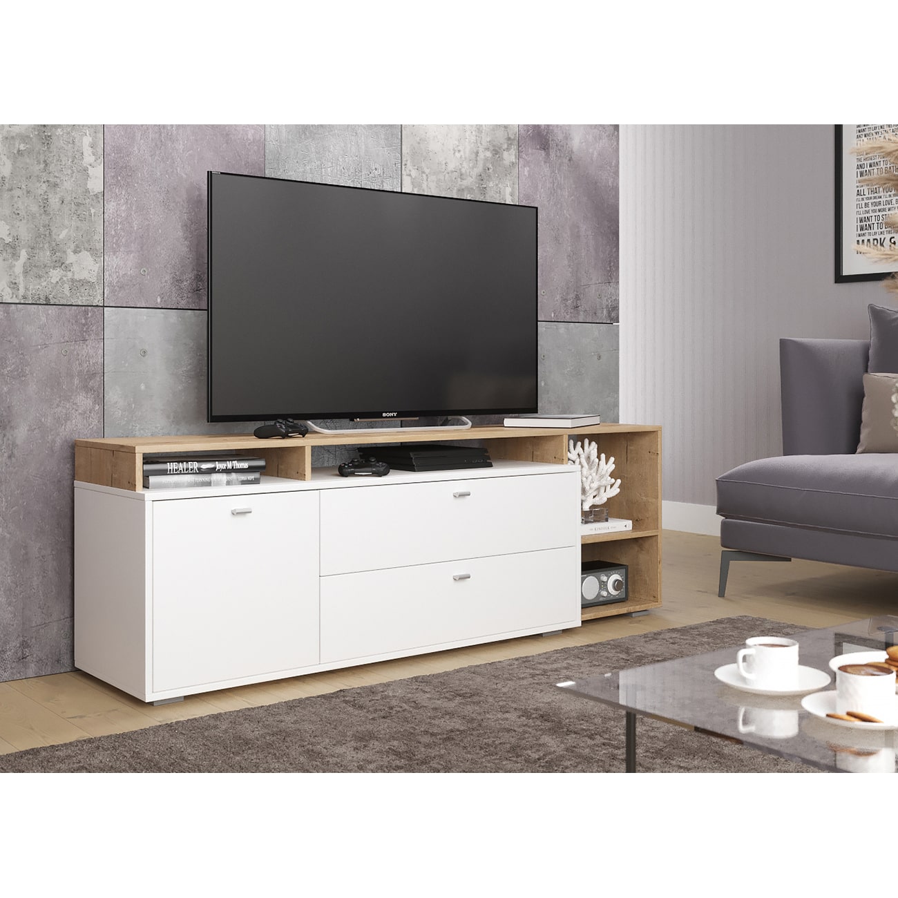 Комод К800 Дуб вотан-Белый гладкий