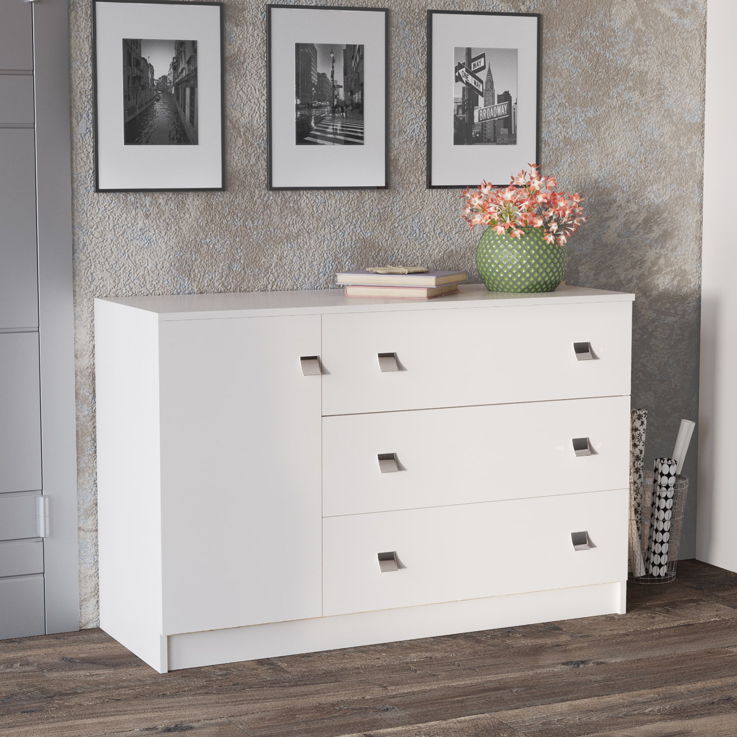 Комод Лофт - это оригинальный элемент интерьера, который подчеркнет ваш стиль и индивидуальность. Он выполнен в современном стиле лофт, который характеризуется простыми формами и геометрическими линиями. Комод имеет широкую столешницу, на которой можно разместить различные предметы. Он также оборудован тремя выдвижными ящиками и одним распашным отделением с полками, что позволяет удобно хранить все необходимые вещи. Комод Лофт станет прекрасным выбором для тех, кто хочет создать уникальный и функциональный интерьер.