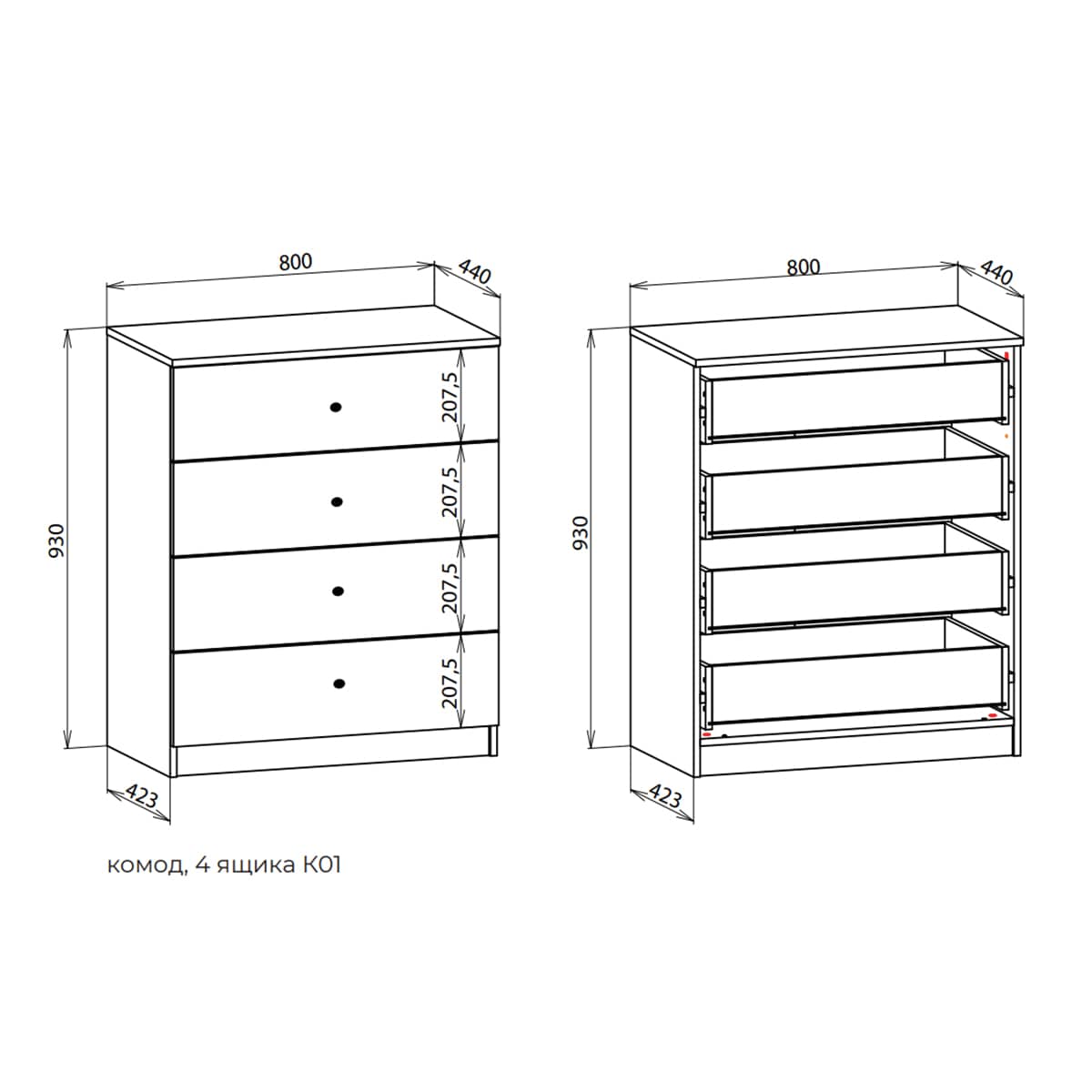 Габариты (ШхГхВ): 800x440x830 мм