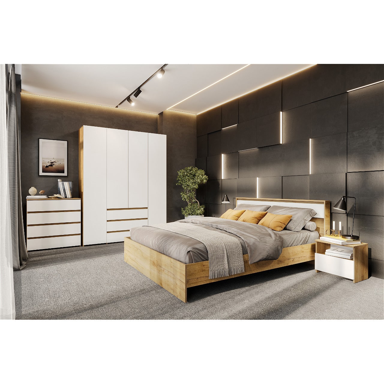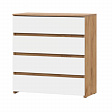Комод c четырьмя выкатными ящиками на шариковых направляющих. Фасад накладной. Сборка корпуса не универсальная. Максимальная нагрузка на крышку - 10кг. Максимальная нагрузка на ящик - 5кг.
