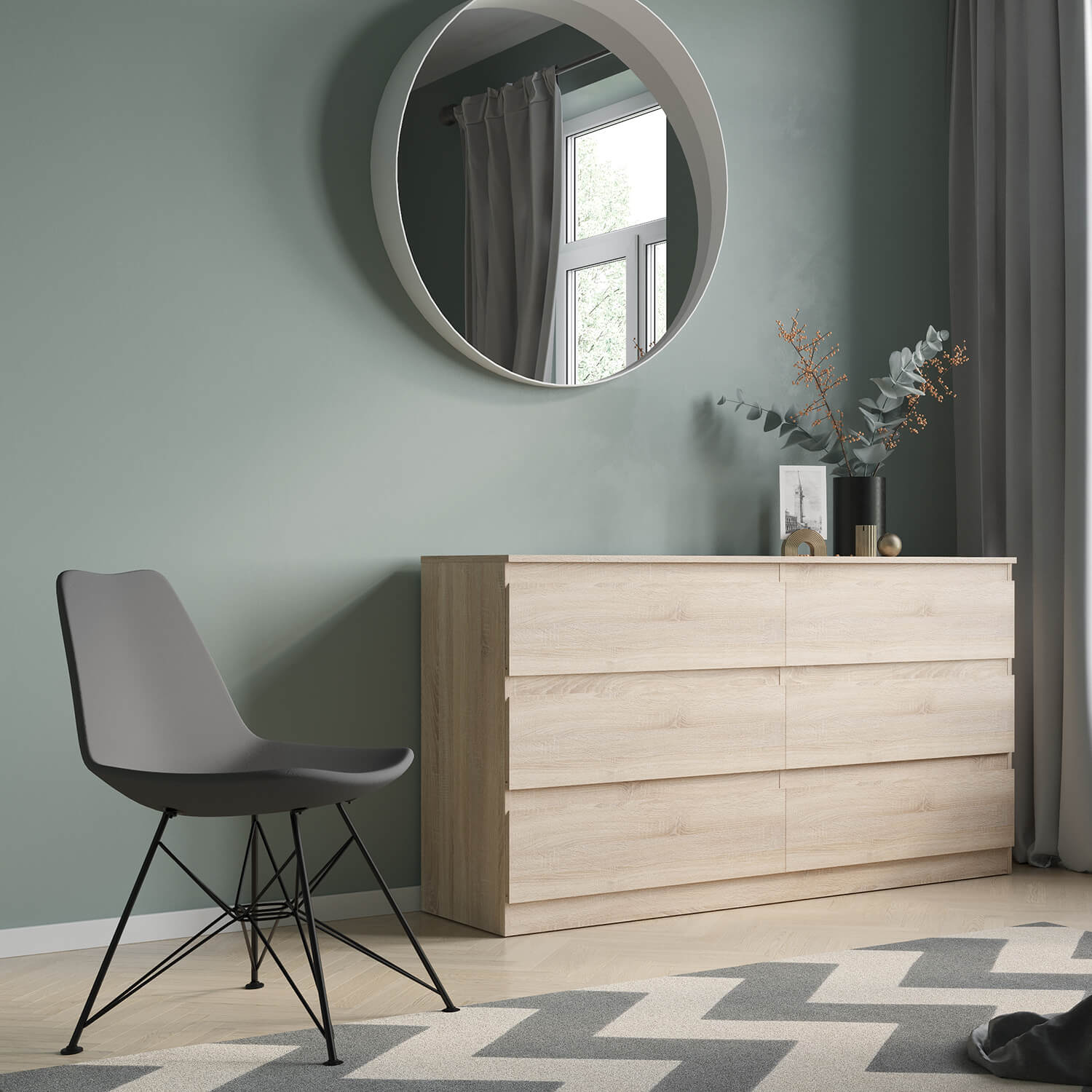 Дизайн без лишних деталей и удобные скошенные ручки на фасадах делают комод STERN Т-6 уместным в любой комнате. Модные цвета декоративной отделки и материал ЛДСП 16 мм придают изделию современный и стильный вид.