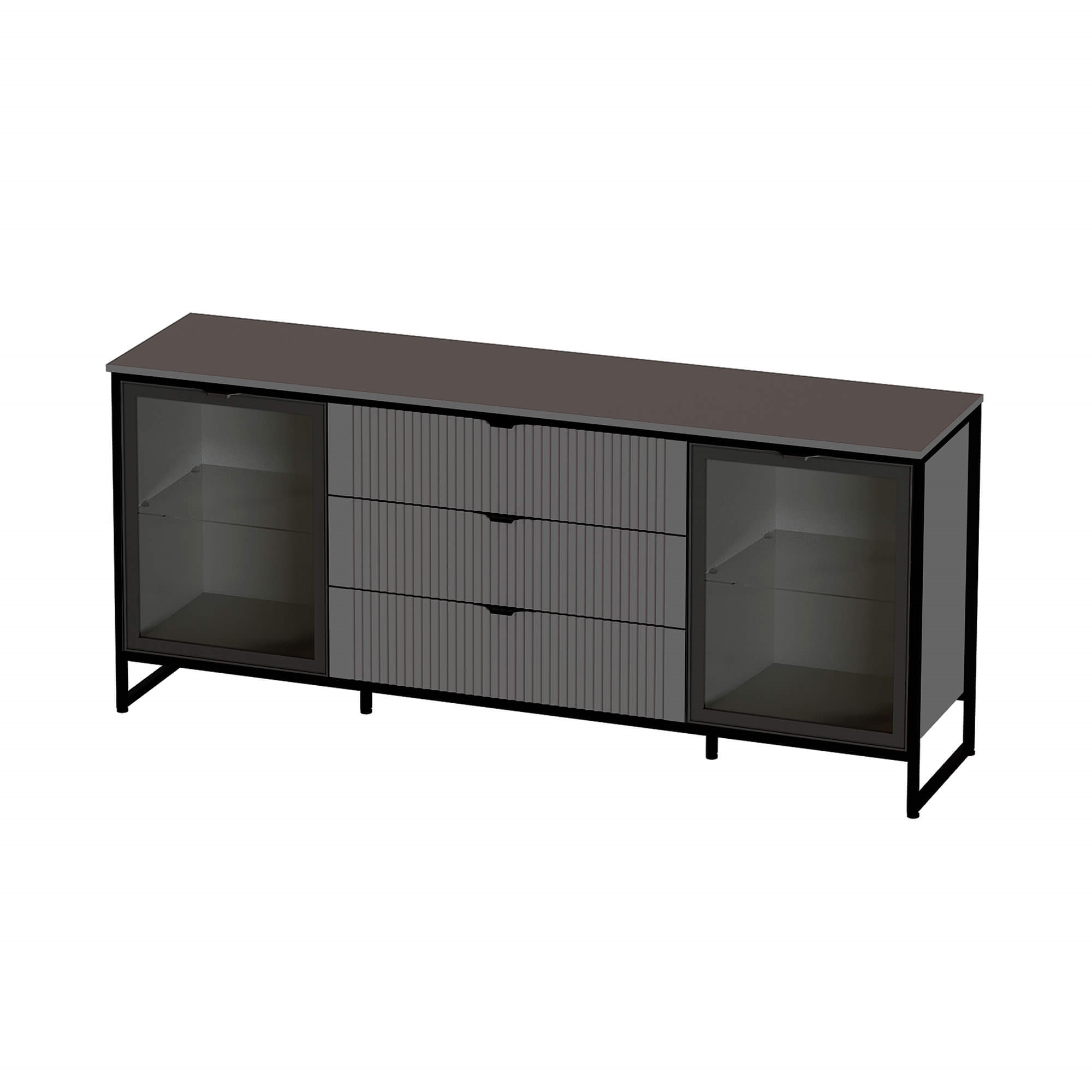 Дизайн коллекции гармонирует со стилем минимализм и лофт. Корпус изделий выполнен из качественного ЛДСП 16 мм, фасады из МДФ 16 мм. Толщина металлических опор - 20 мм.