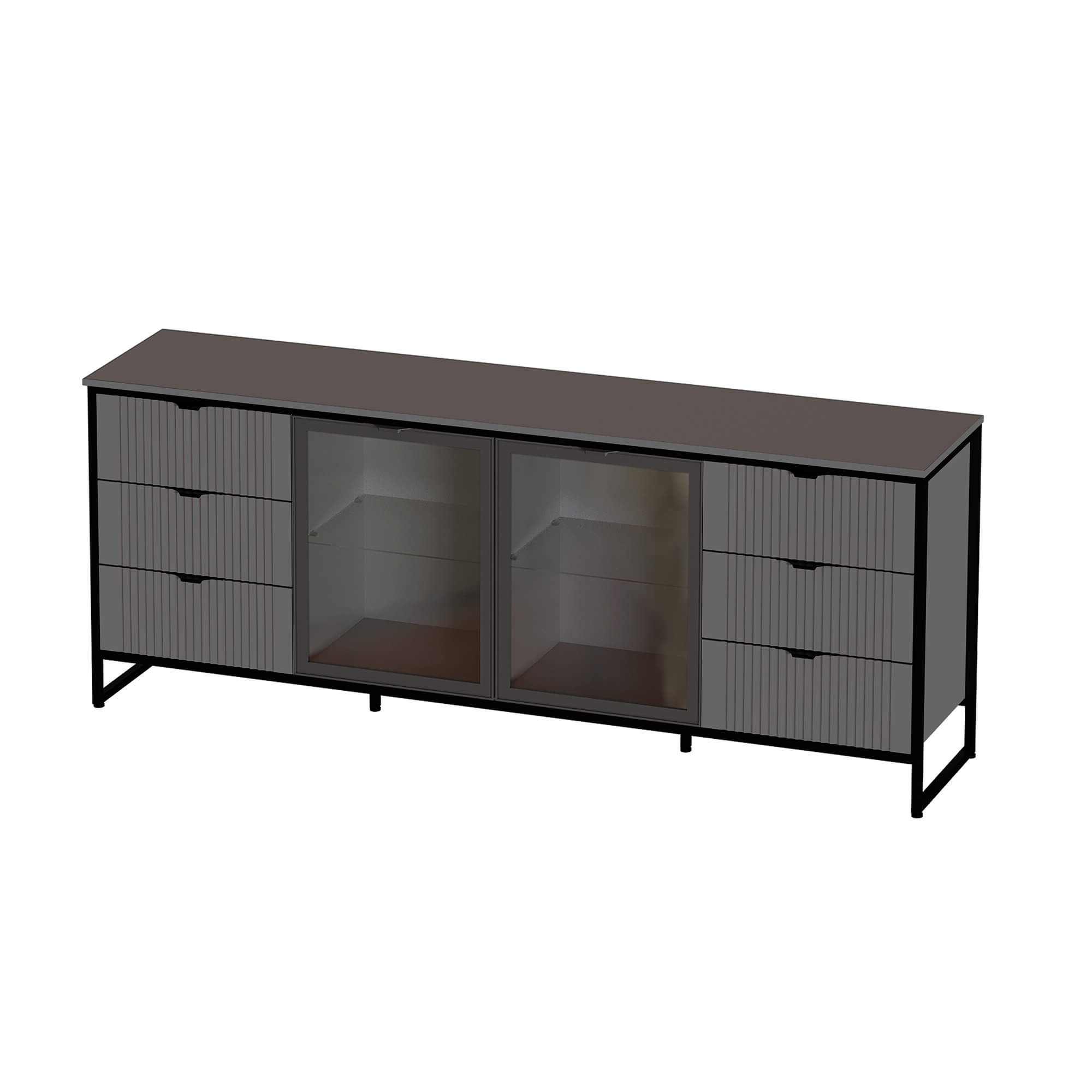 Комод Нора-2 2 двери и 6 ящиков с витринами Металл Бруклин/Графит