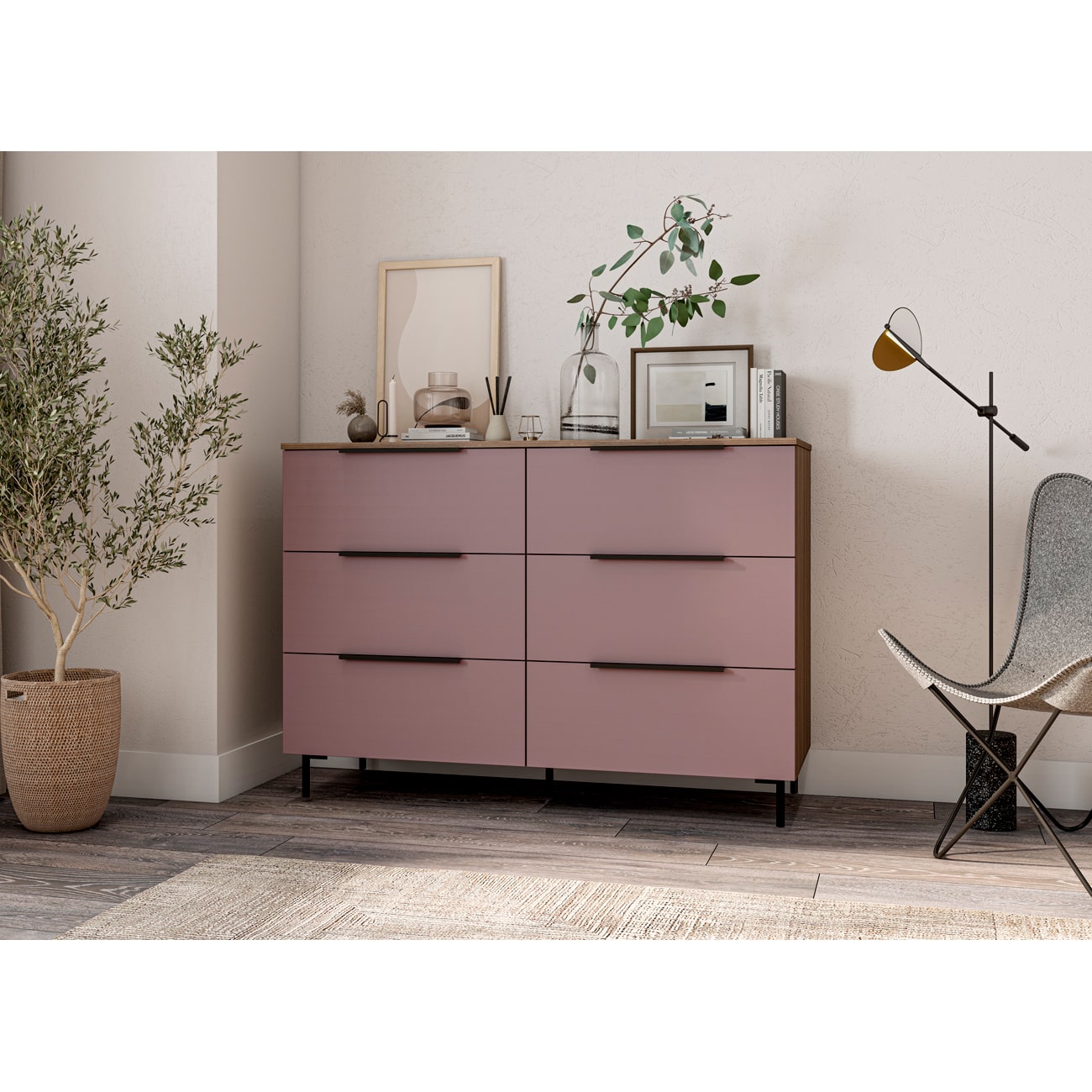 Комод Роза 1300 Орех Франклин/Пудра Скин