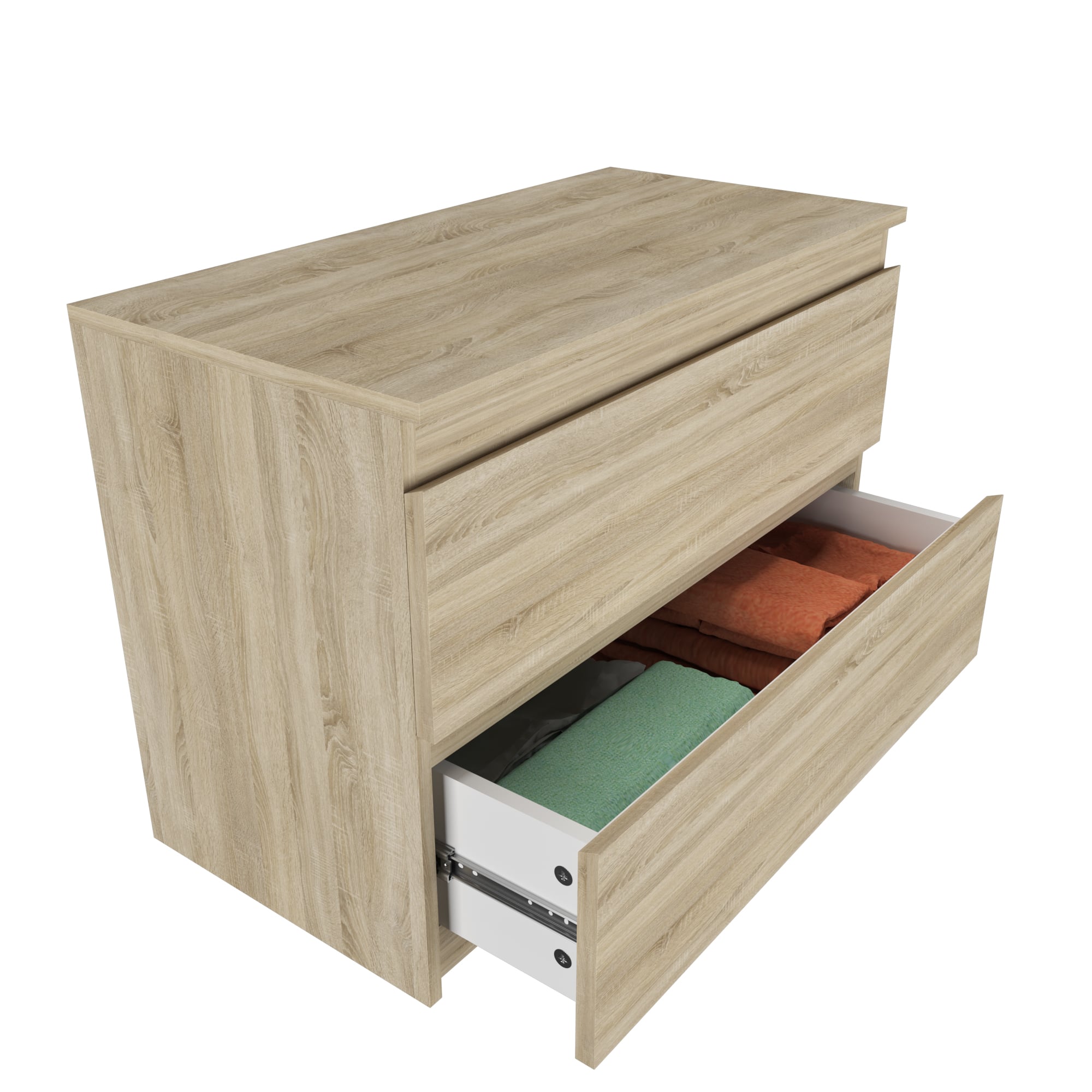 Комод оснащен двумя ящиками, что позволяет удобно хранить различные предметы. Шариковые направляющие обеспечивают плавное и бесшумное открывание ящиков.