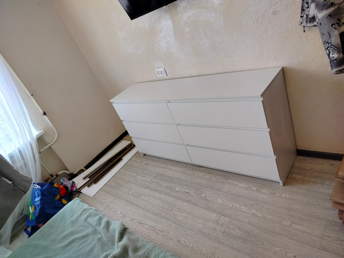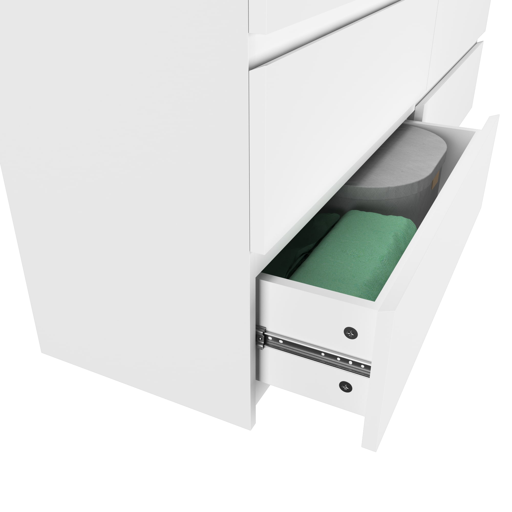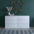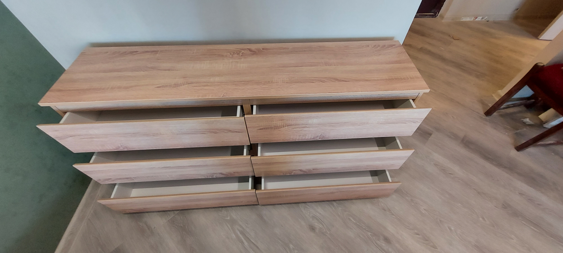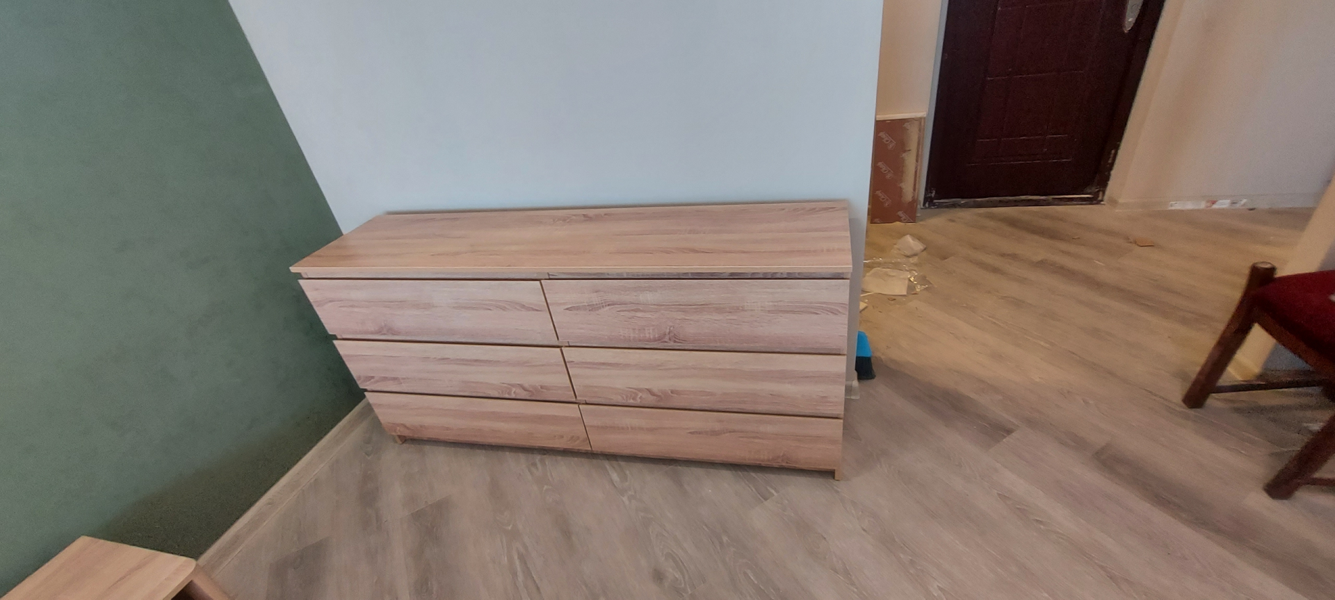 Комод имеет 6 ящиков, что обеспечивает достаточное пространство для хранения различных предметов. Шариковые направляющие обеспечивают плавное и бесшумное открывание ящиков.
