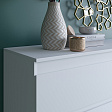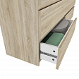Корпус и фасад комода изготовлены из ЛДСП, что обеспечивает прочность и долговечность изделия. Максимальная нагрузка на ящик составляет 5 кг, что позволяет хранить тяжелые предметы без опасения деформации.