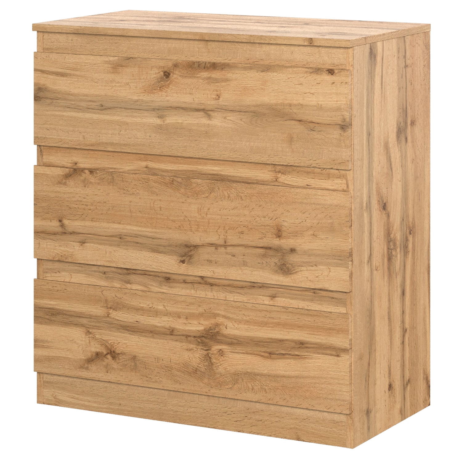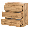 Комод оснащен тремя ящиками, что позволяет удобно разместить белье, одежду или другие предметы. Скошенные ручки на фасадах делают использование комода еще более комфортным.