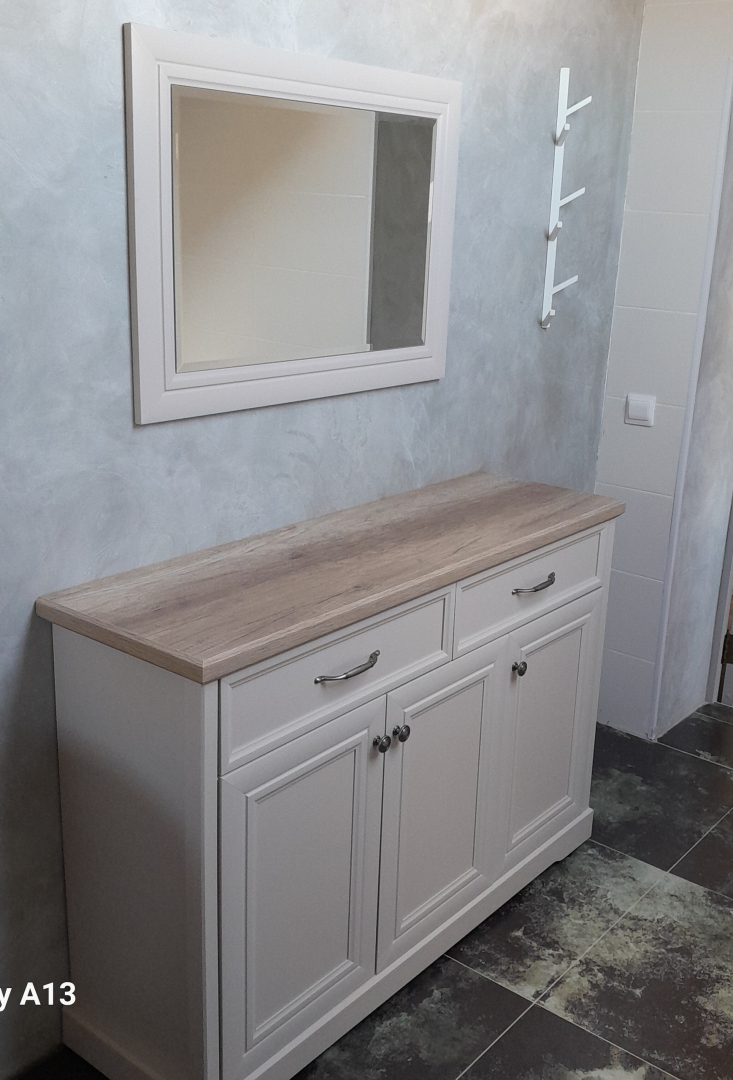 Фасад - рамочно-филенчатая конструкция, ЛДСП, 16 мм (основа); рамка - МДФ, 9 мм; филенка - ЛДСП, 8 мм, цвет - персидский жемчуг. Кромка - меламиновая бумага, толщина 0,3 мм; цвет - персидский жемчуг.