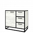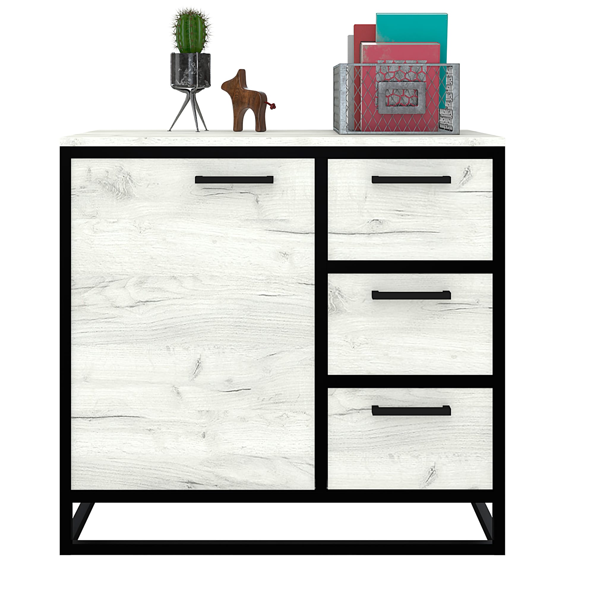 Каркас из трубы 20х20 мм, порошковое покрытие черный муар, ЛДСП, цвет дуб белый 16 мм кромка 0,4мм., направляющие скрытого монтажа, петля накладная, ручка скоба.