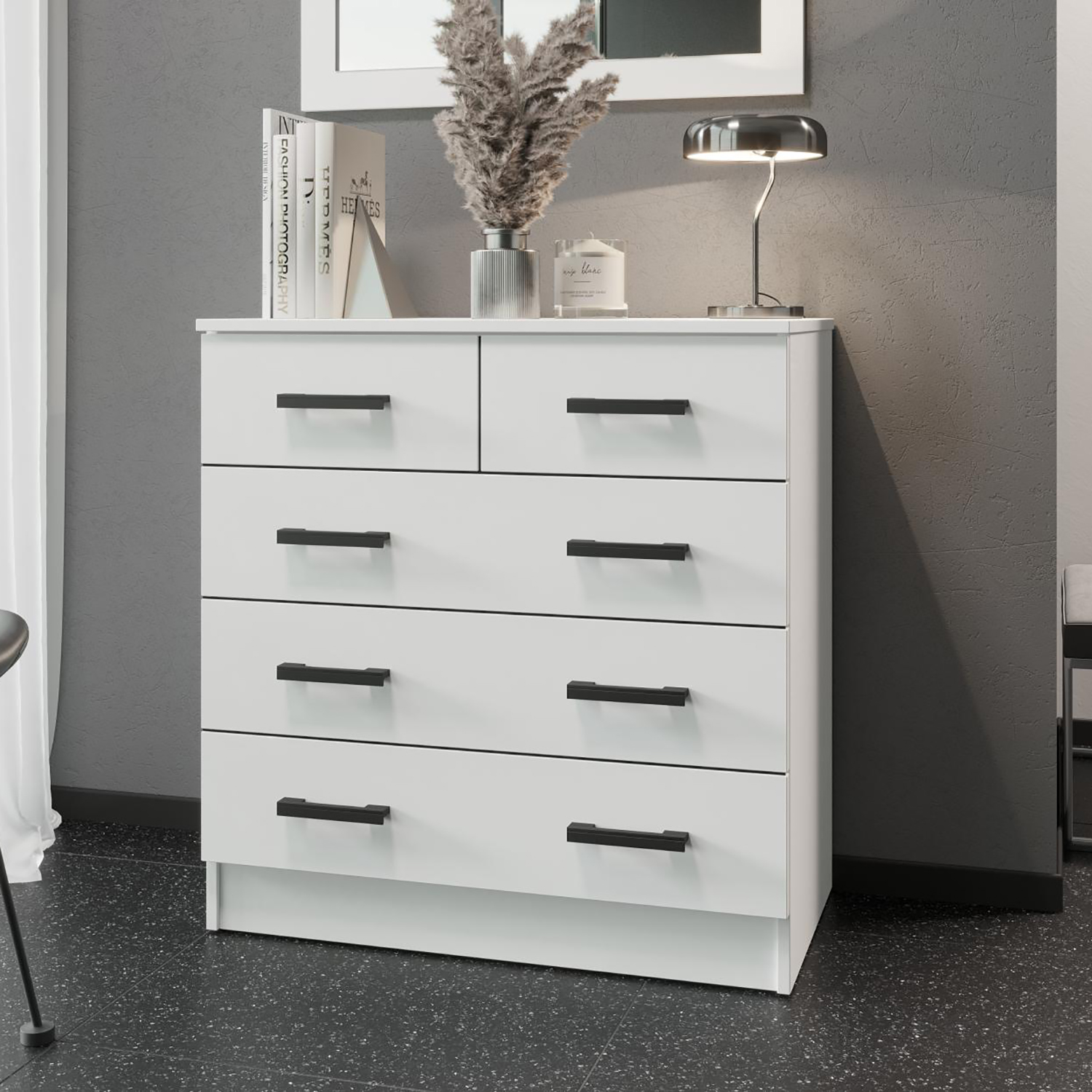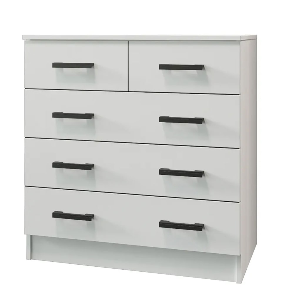 Материал фасада и корпуса комода - ЛДСП, что гарантирует долговечность и устойчивость к механическим повреждениям. Матовая поверхность и модульная конструкция добавляют комоду элегантности и современности.