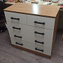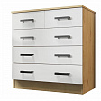 Комод изготовлен из качественного ЛДСП, что обеспечивает его долговечность и надежность. Материал фасада и корпуса – ламинированное ДСП, что гарантирует устойчивость к влаге и механическим повреждениям.