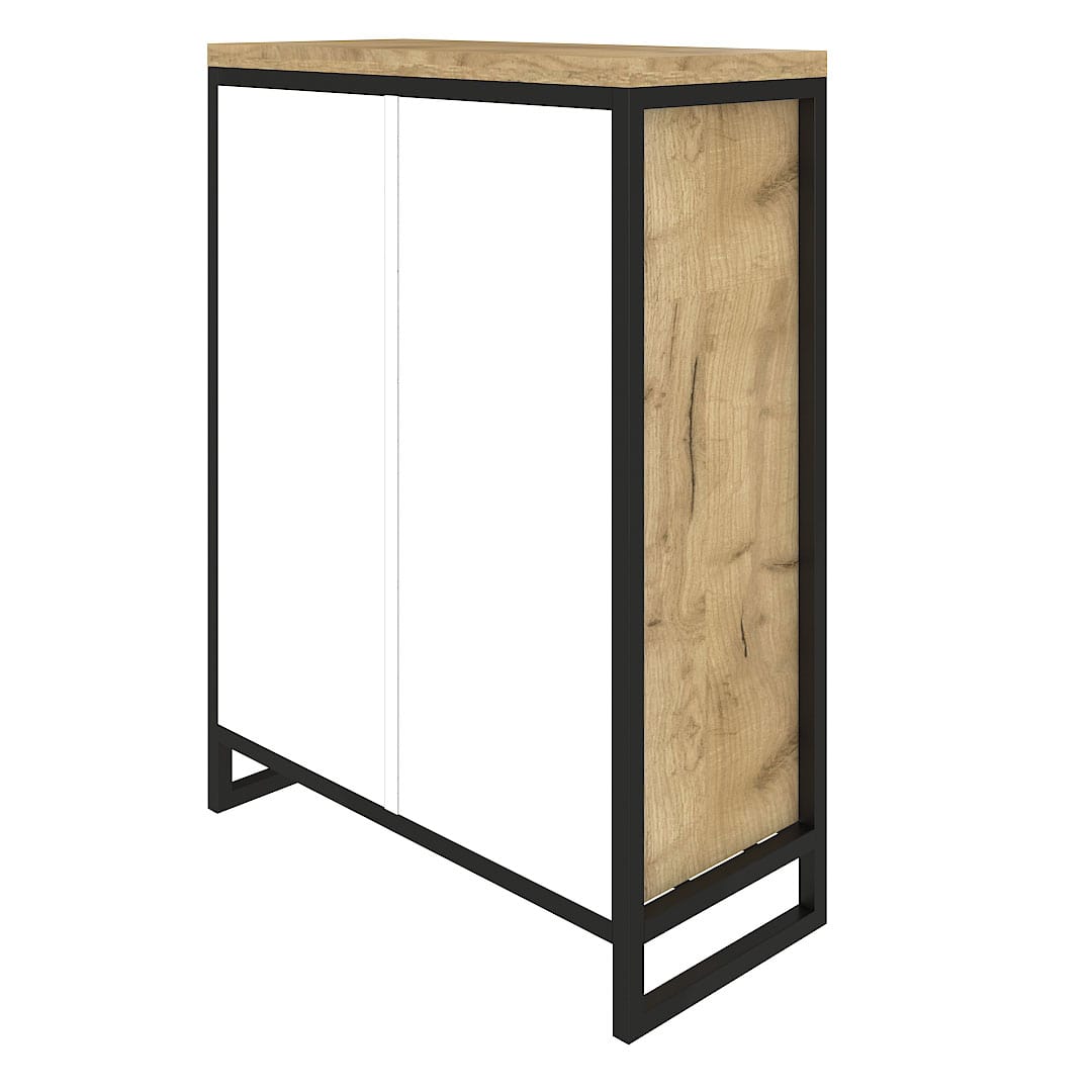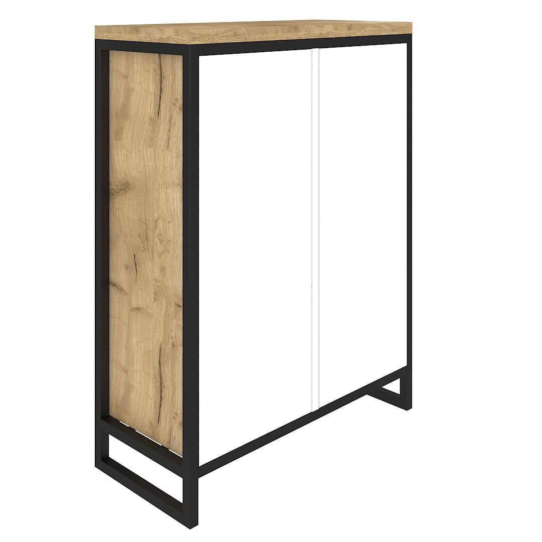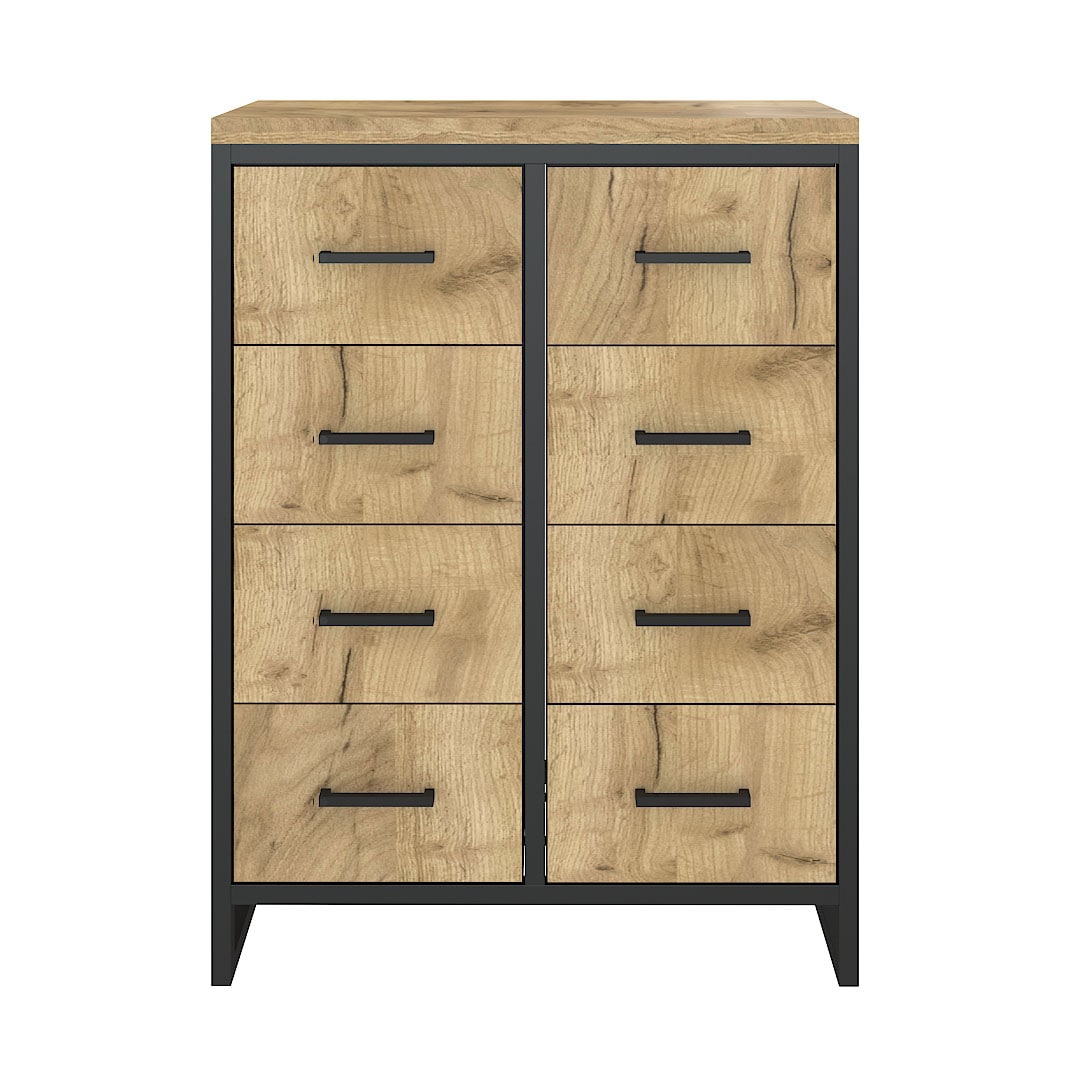 Каркас из трубы 25х25 мм, порошковое покрытие черный муар, ЛДСП 32 мм, цвет дуб табачный, направляющие скрытого монтажа с доводчиком.