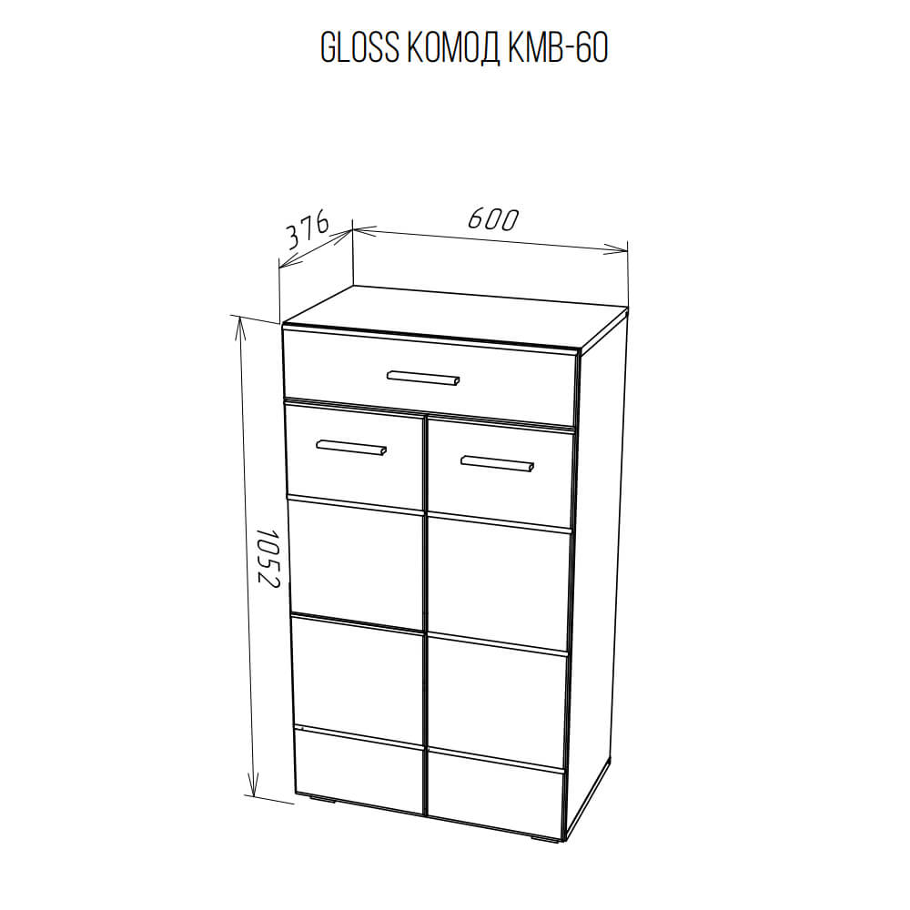 Комод GLOSS КМВ-60 имеет размеры 105.2 см в высоту, 60 см в ширину и 37.6 см в глубину, что позволяет разместить его даже в небольших помещениях.