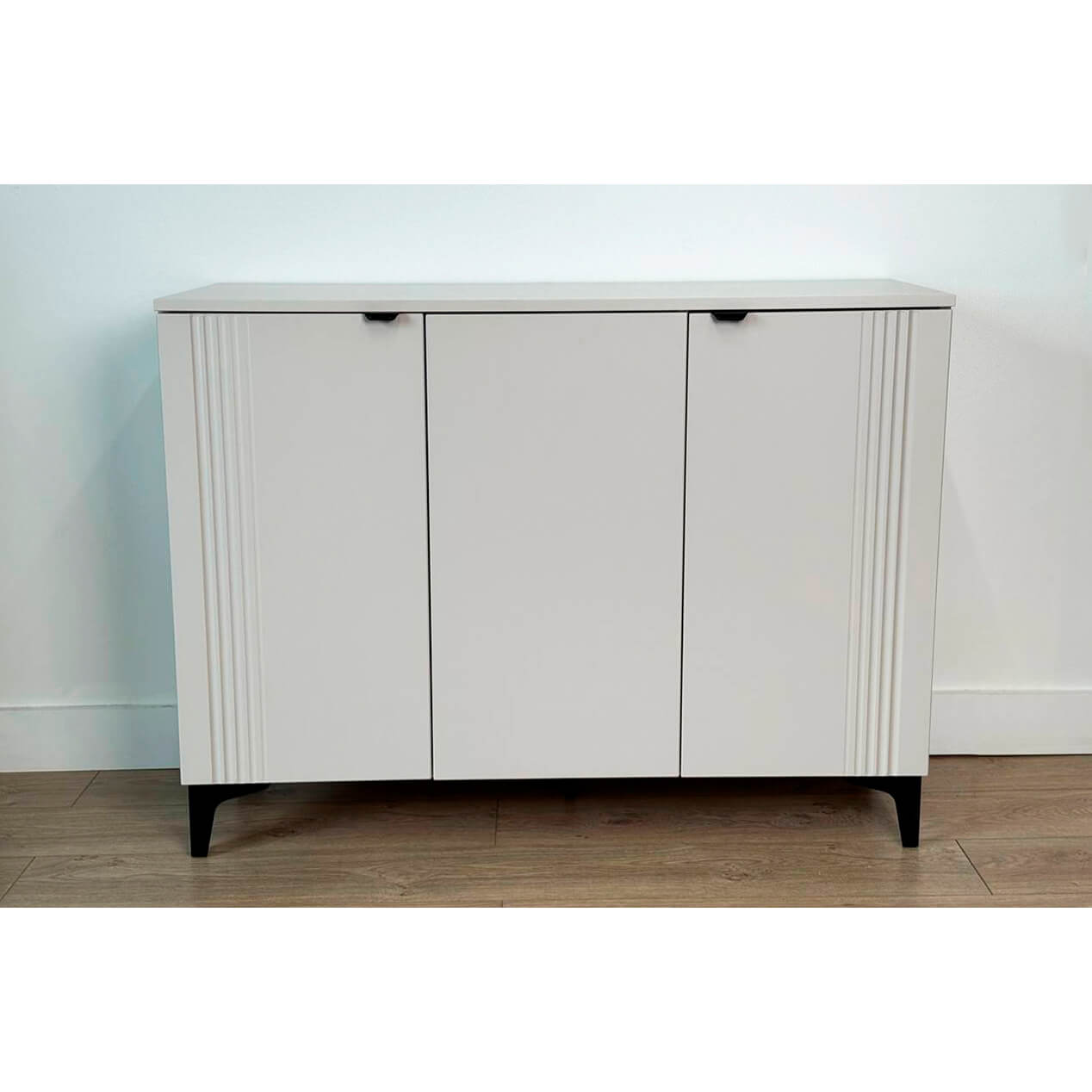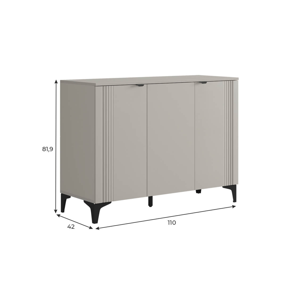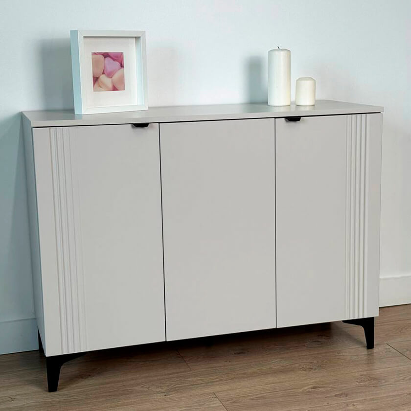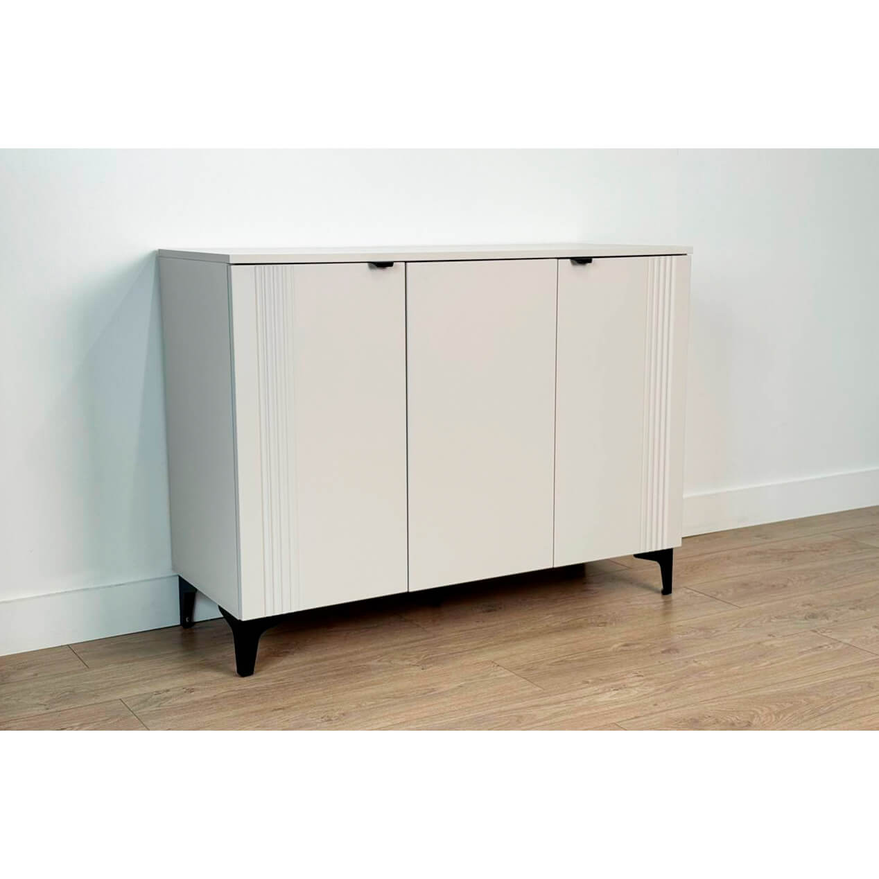 Дверцы комода выполнены из МДФ с фрезеровкой и скрывают за собой просторное хранилище для различных вещей.