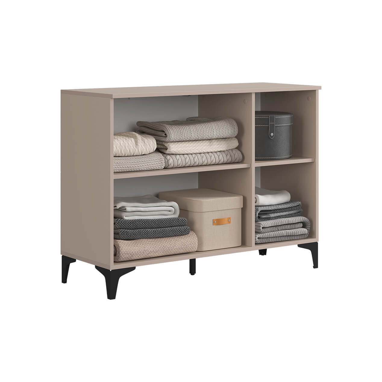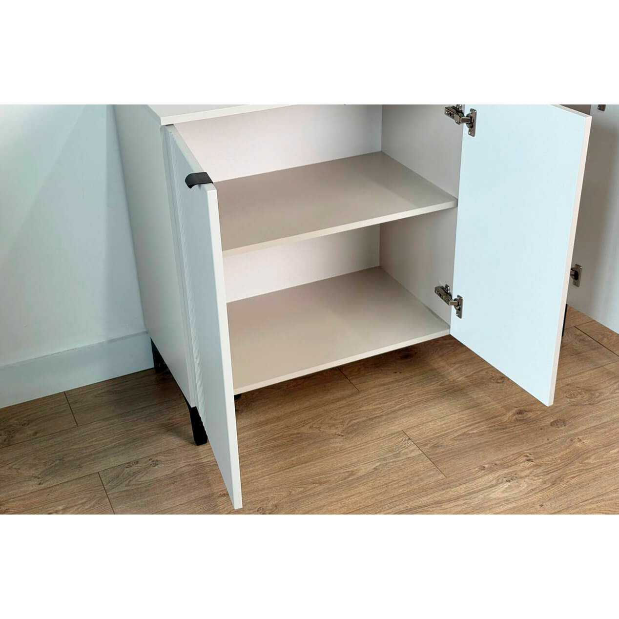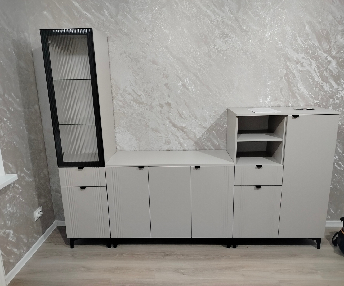 Дверцы комода выполнены из МДФ с фрезеровкой и скрывают за собой просторное хранилище для различных вещей.