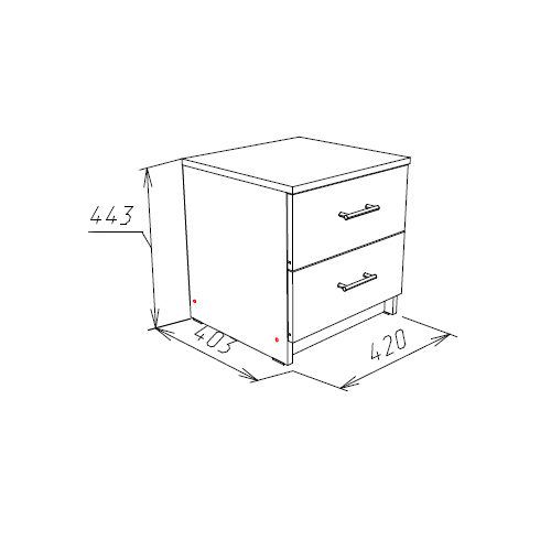 Размеры комода составляют 42 см в ширину, 40,3 см в глубину и 44,3 см в высоту, что делает его компактным и удобным для использования в различных помещениях.