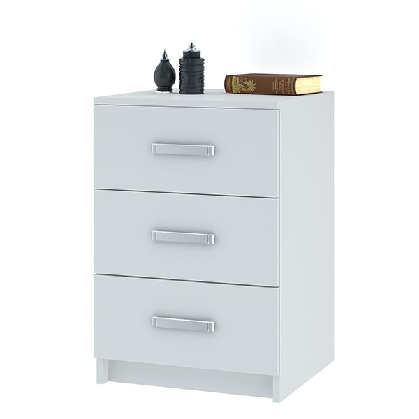 Комод оснащен тремя ящиками, что позволяет удобно хранить различные предметы и аксессуары. Роликовые направляющие обеспечивают легкость и бесшумность движения ящиков.