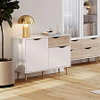 Комод «Соната» — это стильное и функциональное решение для хранения вещей. Он изготовлен из качественных материалов и имеет декор в скандинавском стиле. Благодаря чистым линиям корпуса, белым фасадам и высоким стильным опорам из массива берёзы, комод гармонично впишется в любой интерьер.