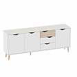 Комод «Соната» — это стильное и функциональное решение для хранения вещей. Он изготовлен из качественных материалов и имеет декор в скандинавском стиле. Благодаря чистым линиям корпуса, белым фасадам и высоким стильным опорам из массива берёзы, комод гармонично впишется в любой интерьер.
