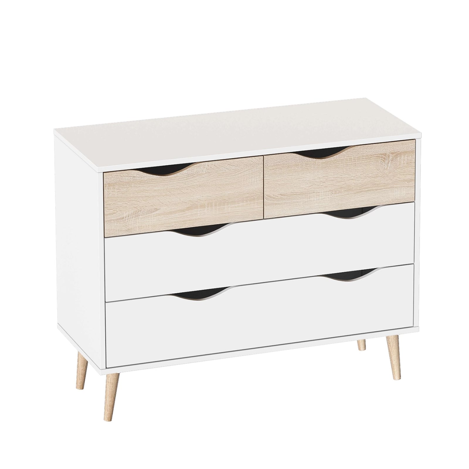 Корпус комода выполнен из белоснежного ЛДСП.