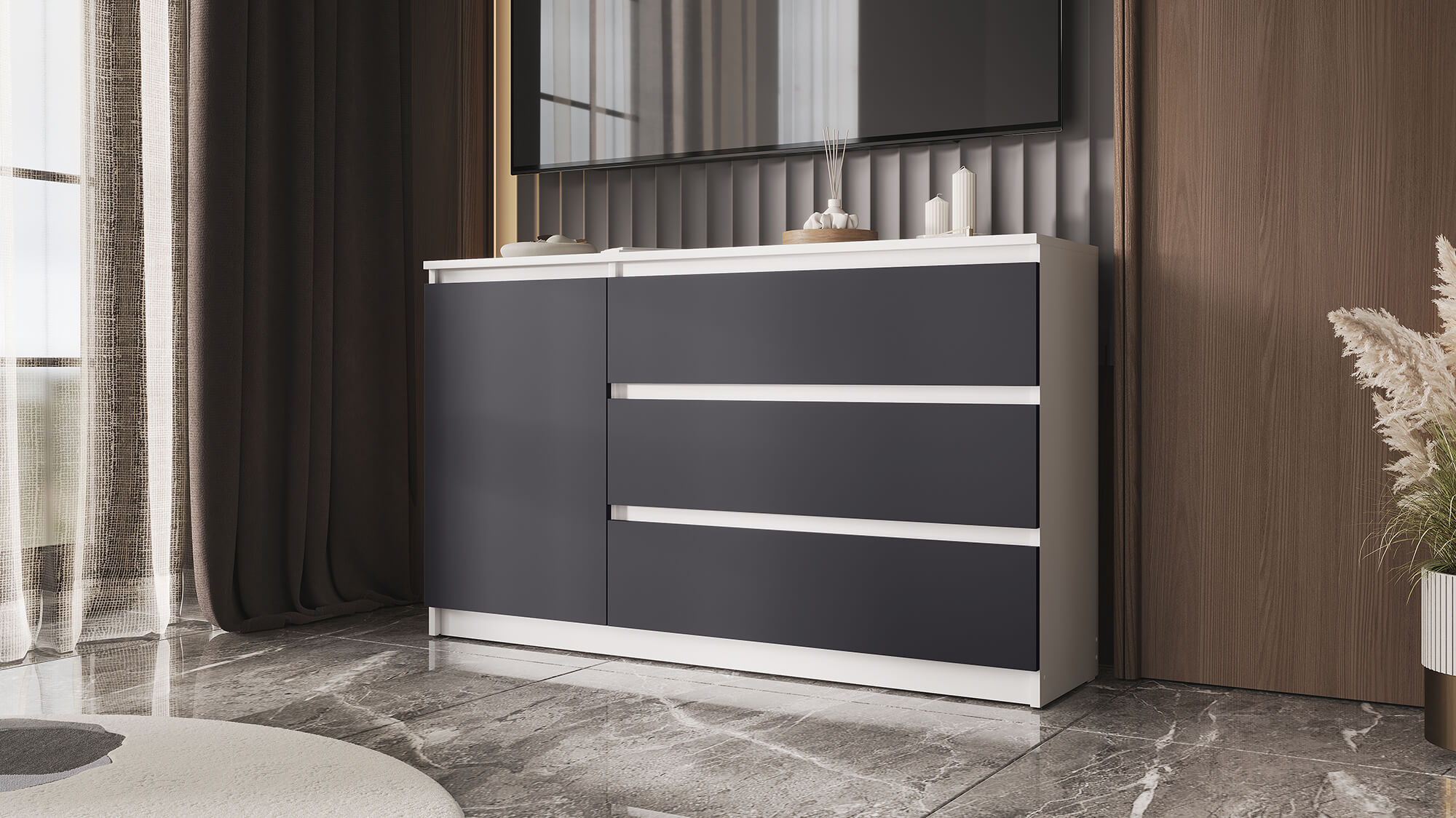 Комод ВЕГА 1Д-3Я Белый гладкий/Графит