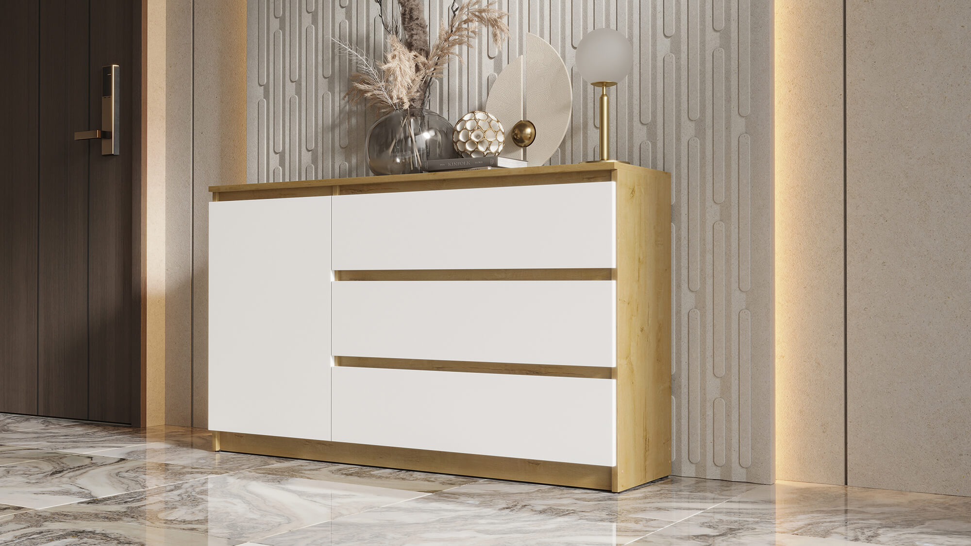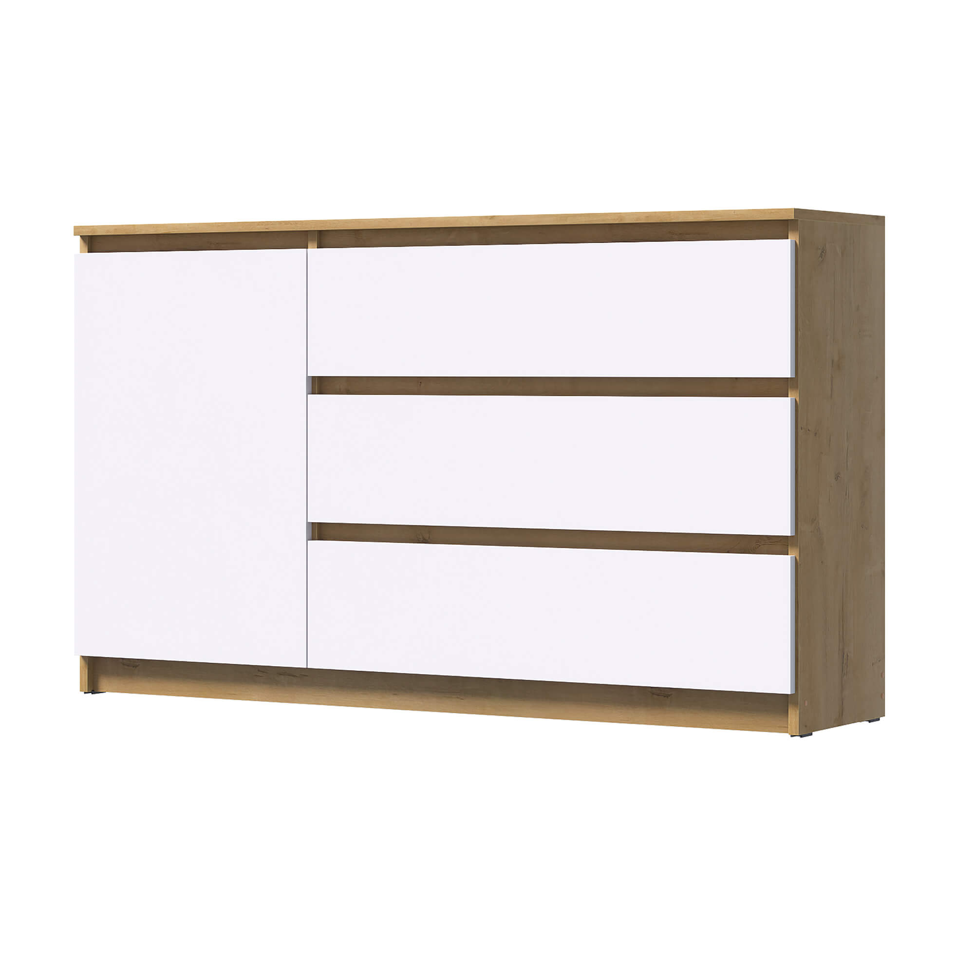 Комод ВЕГА 1Д-3Я Дуб Вотан/Белый гладкий