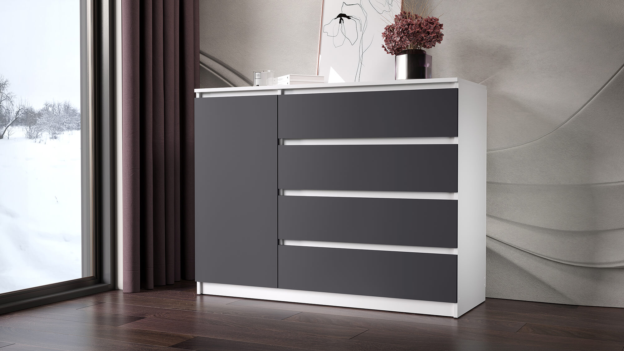 Комод ВЕГА Люкс 1Д-4Я Белый гладкий/Графит